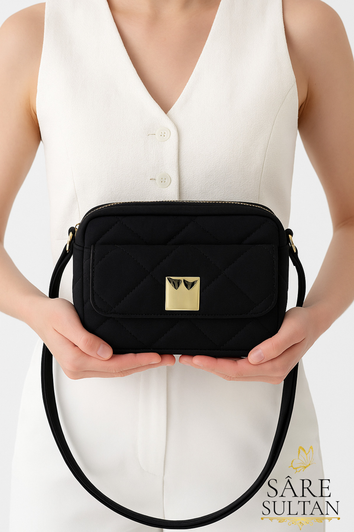 Siyah Kapitone Omuz ve Çapraz Askılı Çanta – Gold Tokalı, Şık ve Fonksiyonel Tasarım Kadın Çantası Siyah Kapitone Omuz ve Çapraz Askılı Çanta – Gold Tokalı, Şık ve Fonksiyonel Tasarım Kadın Çantası SareSultan02