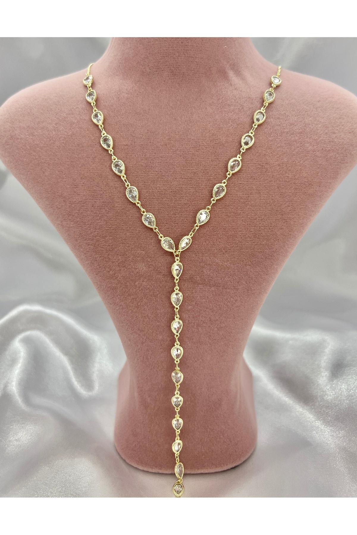 Gold Damla Figür Taş Detaylı Y Kolye Gold Damla Figür Taş Detaylı Y Kolye BİJUMN00983 1