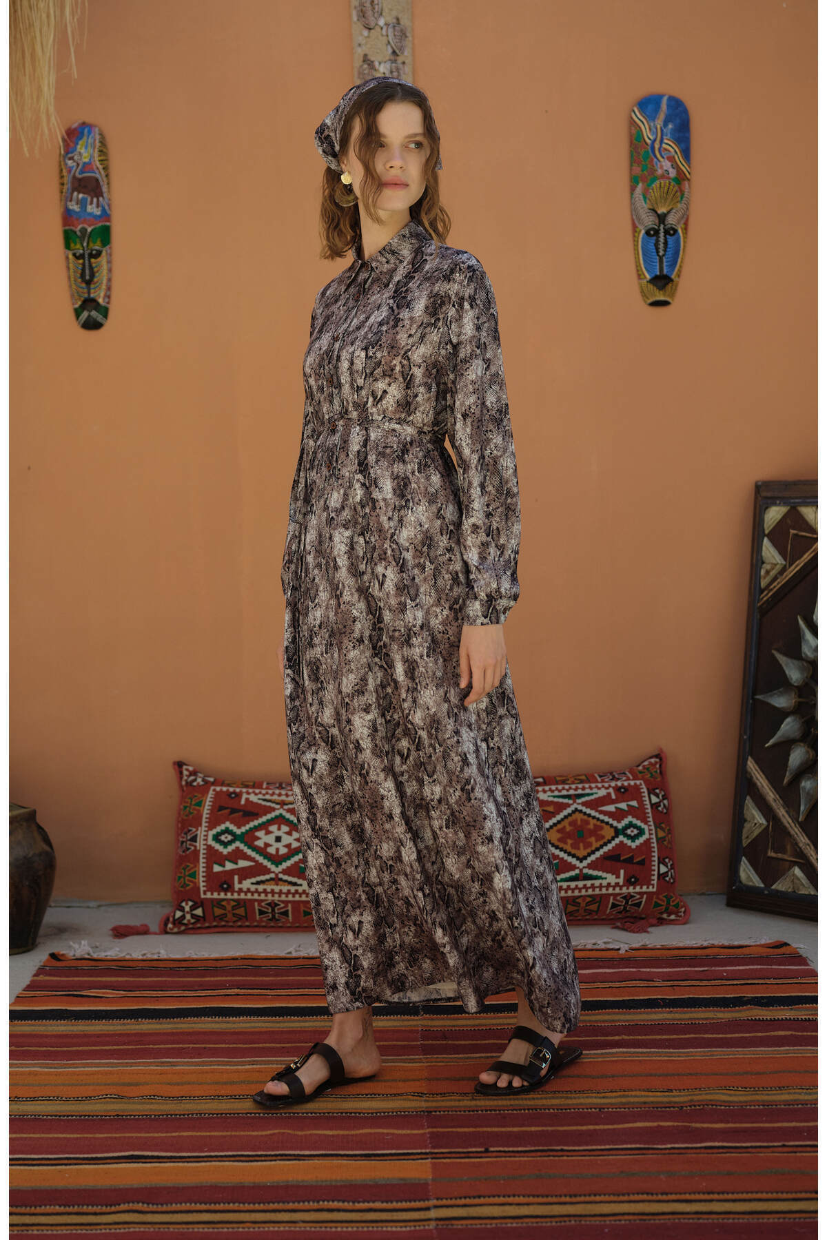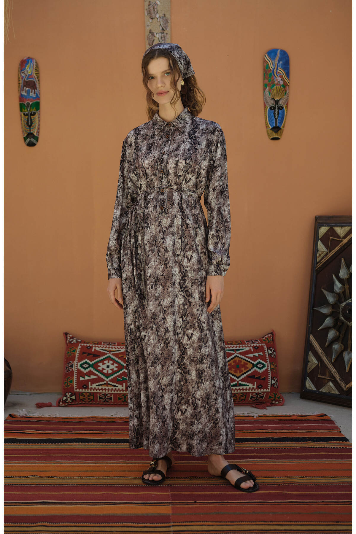 Bağlamalı Acı Kahve Animal Desenli Viskon Elbise Bağlamalı Acı Kahve Animal Desenli Viskon Elbise FA2025YS-6116 XL