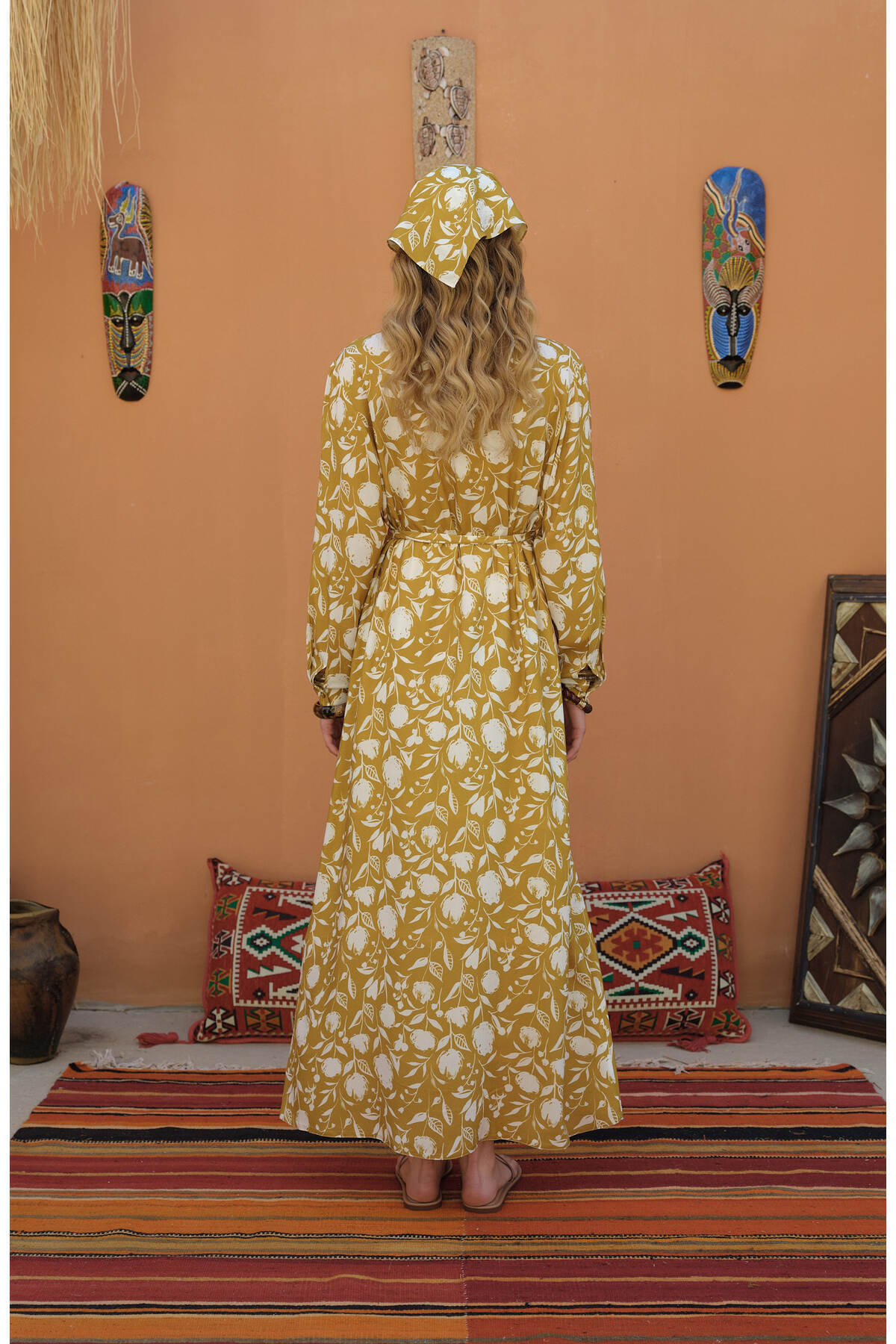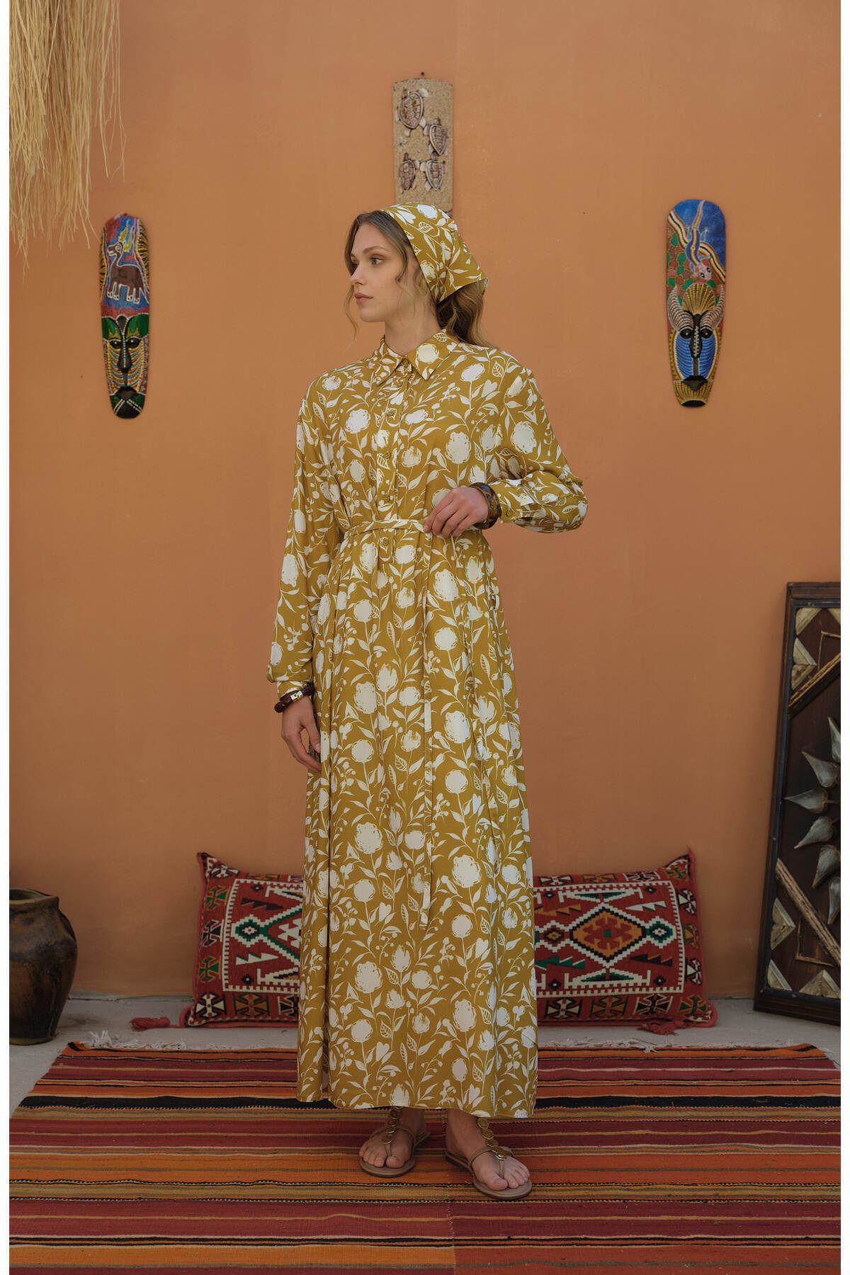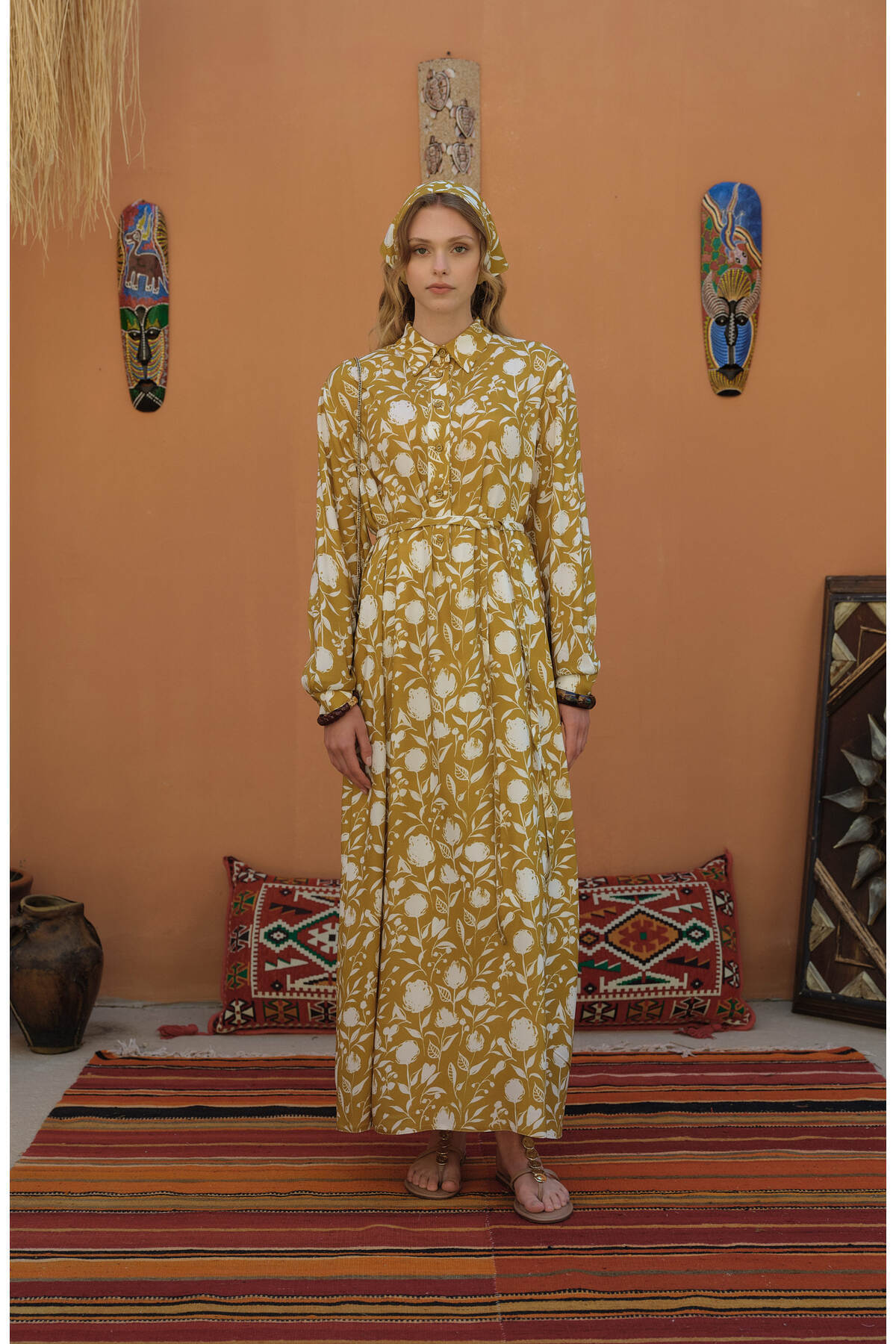 Bağlamalı Yağ Yeşili Floral Desenli Viskon Elbise Bağlamalı Yağ Yeşili Floral Desenli Viskon Elbise FA2025YS-6116 XL