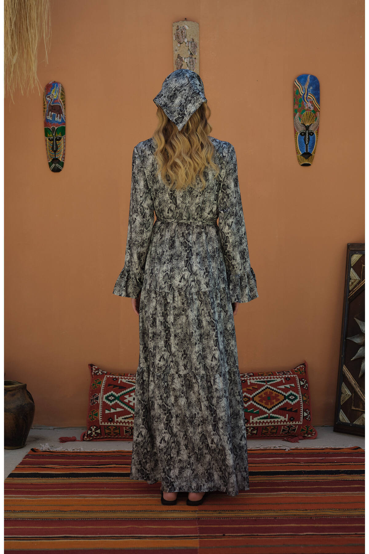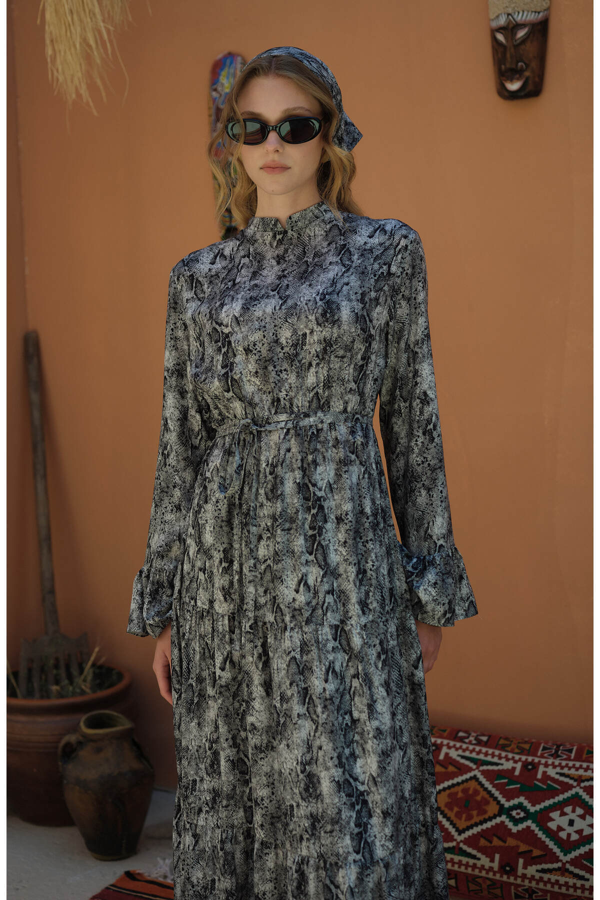 Büzgülü Siyah Animal Desenli Viskon Elbise Büzgülü Siyah Animal Desenli Viskon Elbise FA2025YS-6107 XL