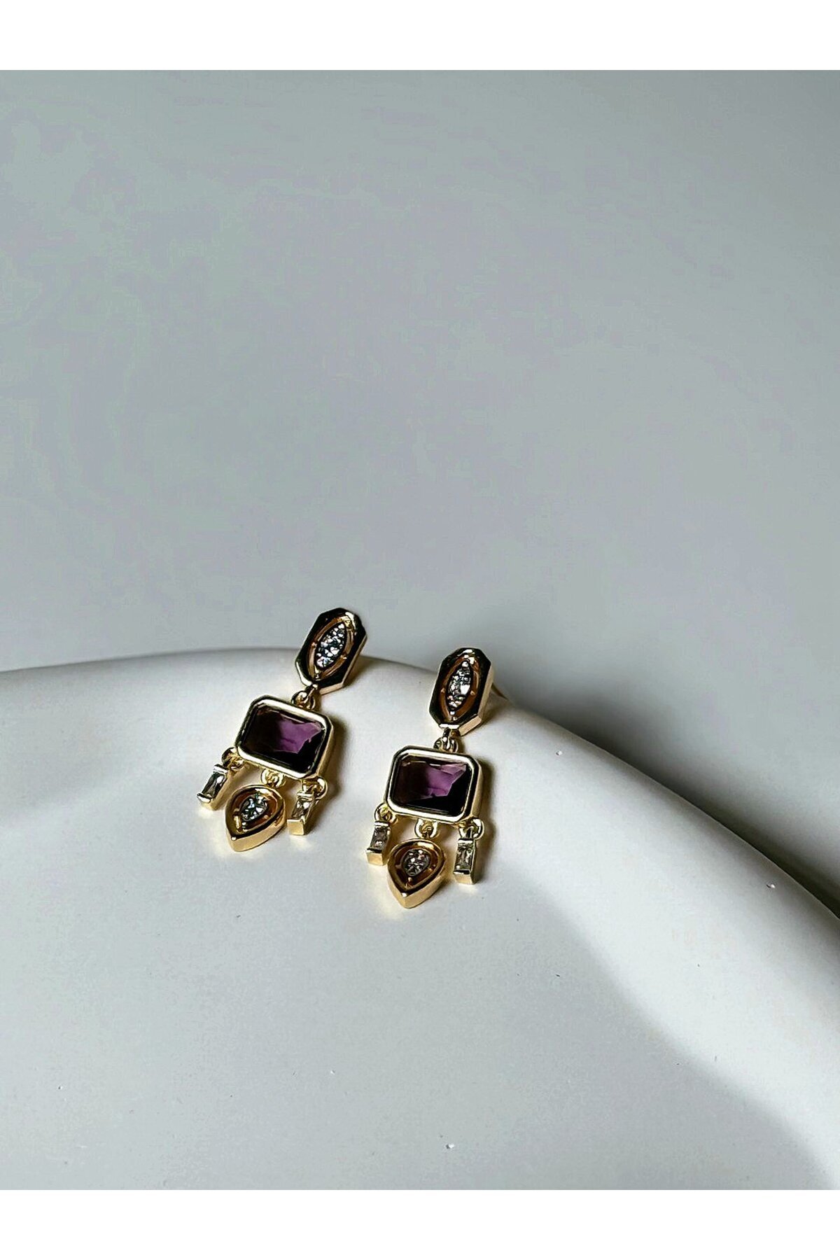Çelik Renkli Kristal Taşlı Sallantılı Violet Küpe -kararma yapmaz- Çelik Renkli Kristal Taşlı Sallantılı Violet Küpe -kararma yapmaz- CKP-0705 تک سایز
