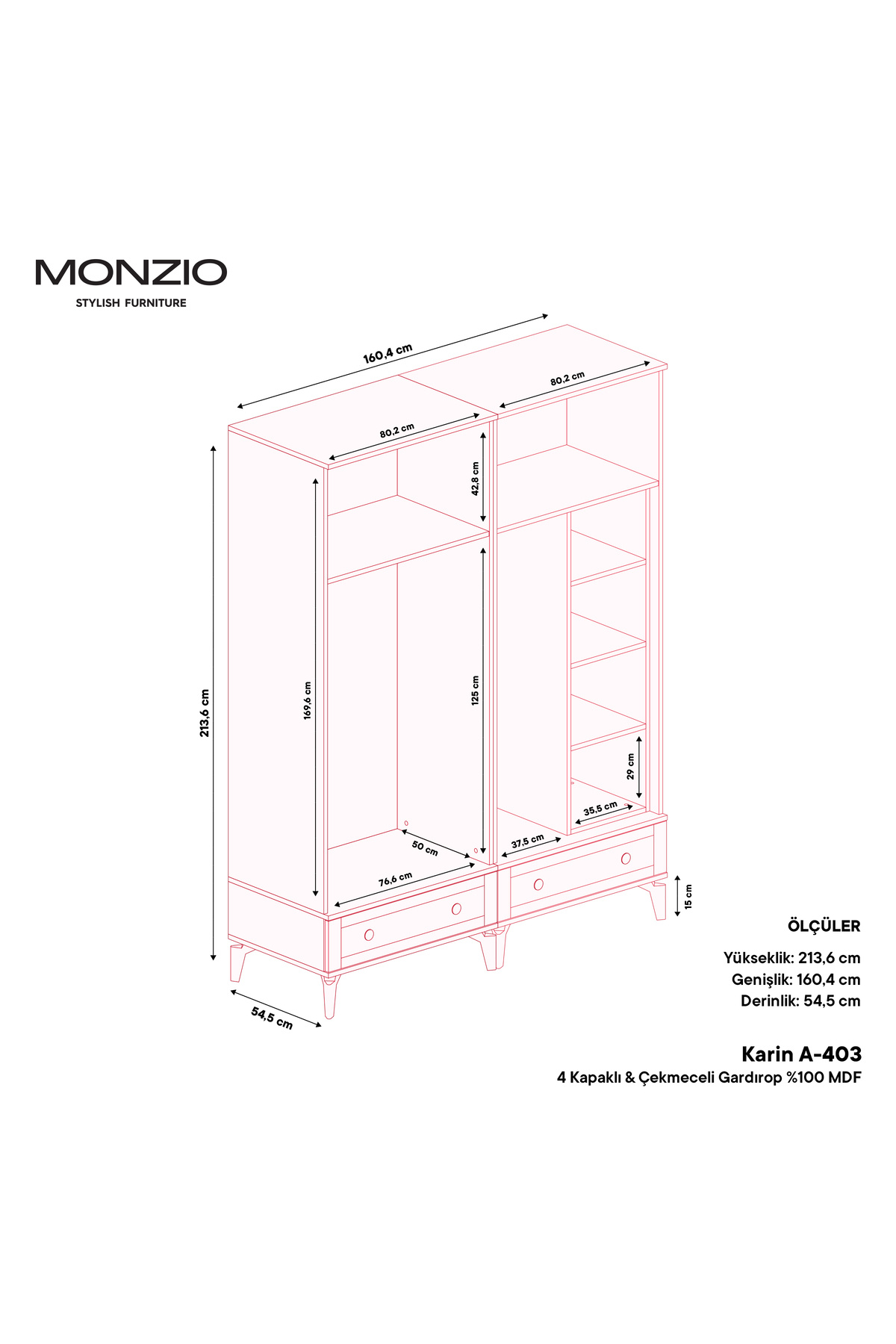 Karin 4 Kapaklı Çekmeceli Gardırop %100 MDF Karin 4 Kapaklı Çekmeceli Gardırop %100 MDF DA403 213 cm