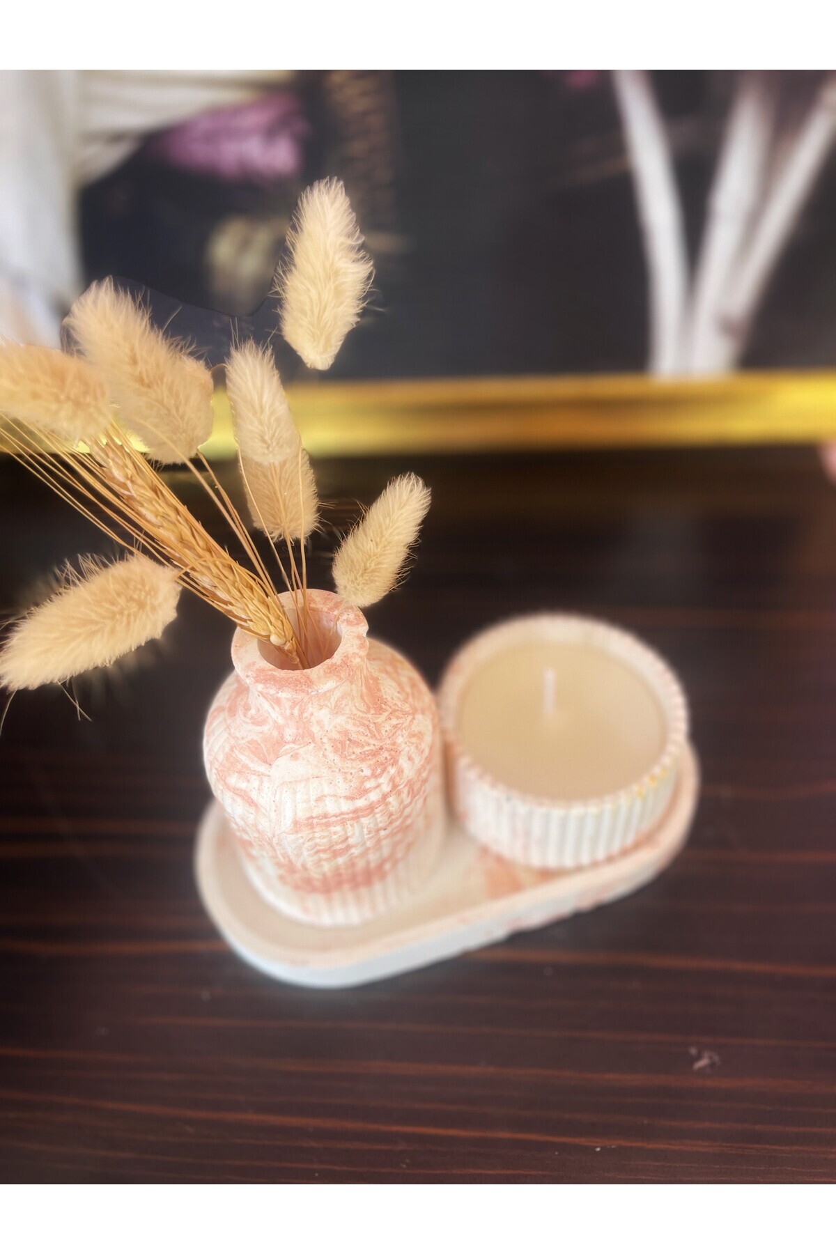 3 Parça Mermer Desen Dekoratif Vazo Ve Mumluk Set (Mum Dahil) 3 Parça Mermer Desen Dekoratif Vazo Ve Mumluk Set (Mum Dahil) pembeyaz تک سایز