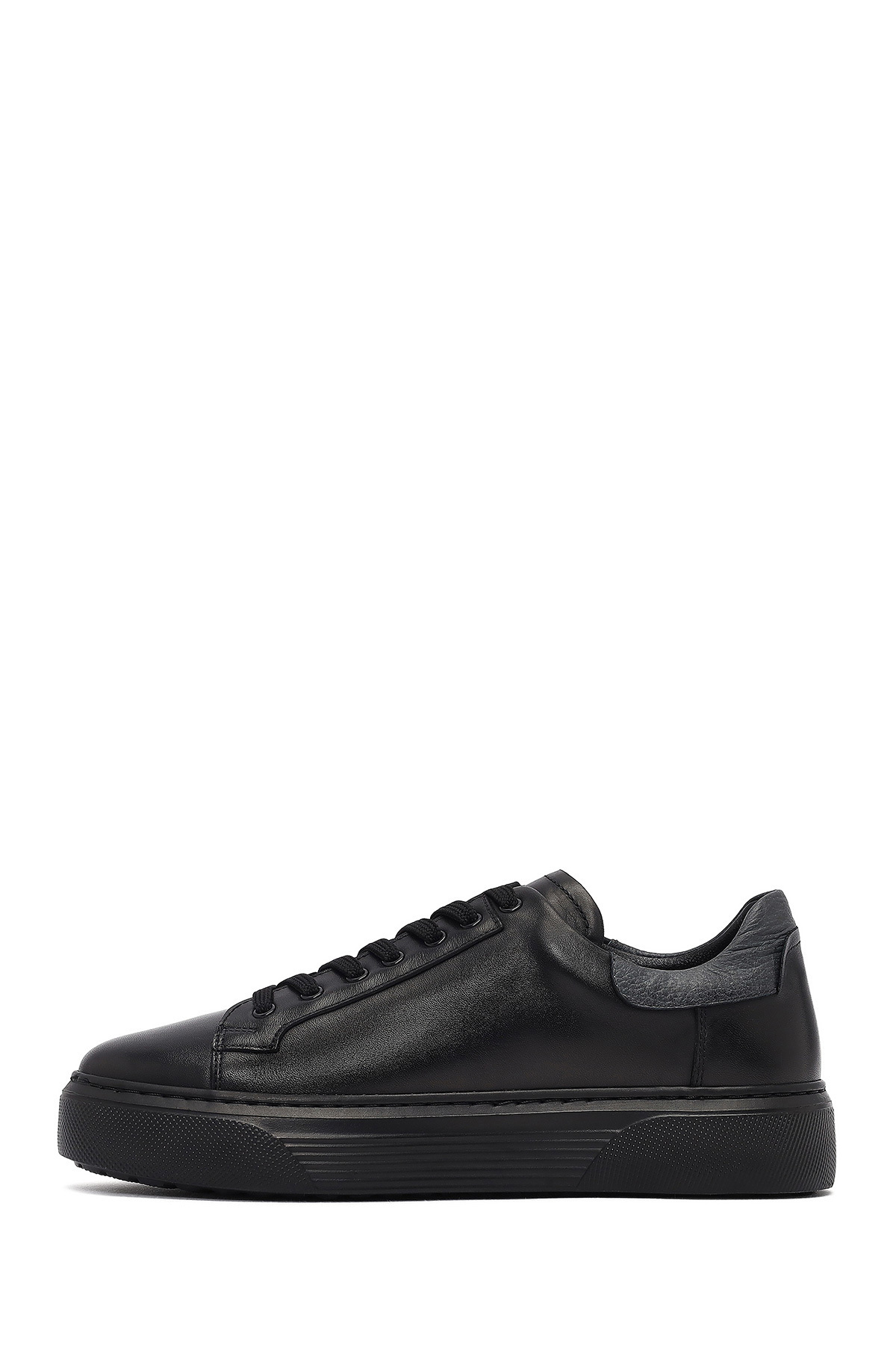 Erkek Siyah Bağcıklı Kalın Tabanlı Deri Sneaker,Kışlık Spor Ayakkabı 25WFD640418 Erkek Siyah Bağcıklı Kalın Tabanlı Deri Sneaker,Kışlık Spor Ayakkabı 25WFD640418 44