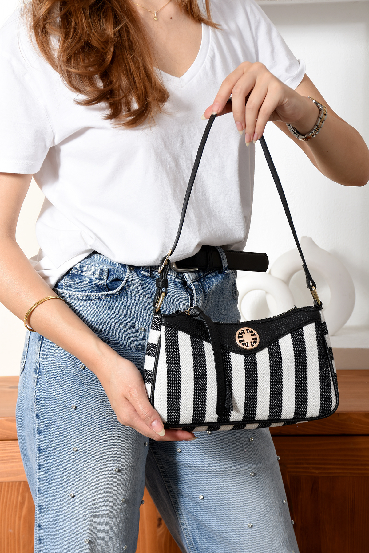 Kadın Çizgili El ve Omuz Çantası Kadın Çizgili El ve Omuz Çantası SHKR6600 تک سایز