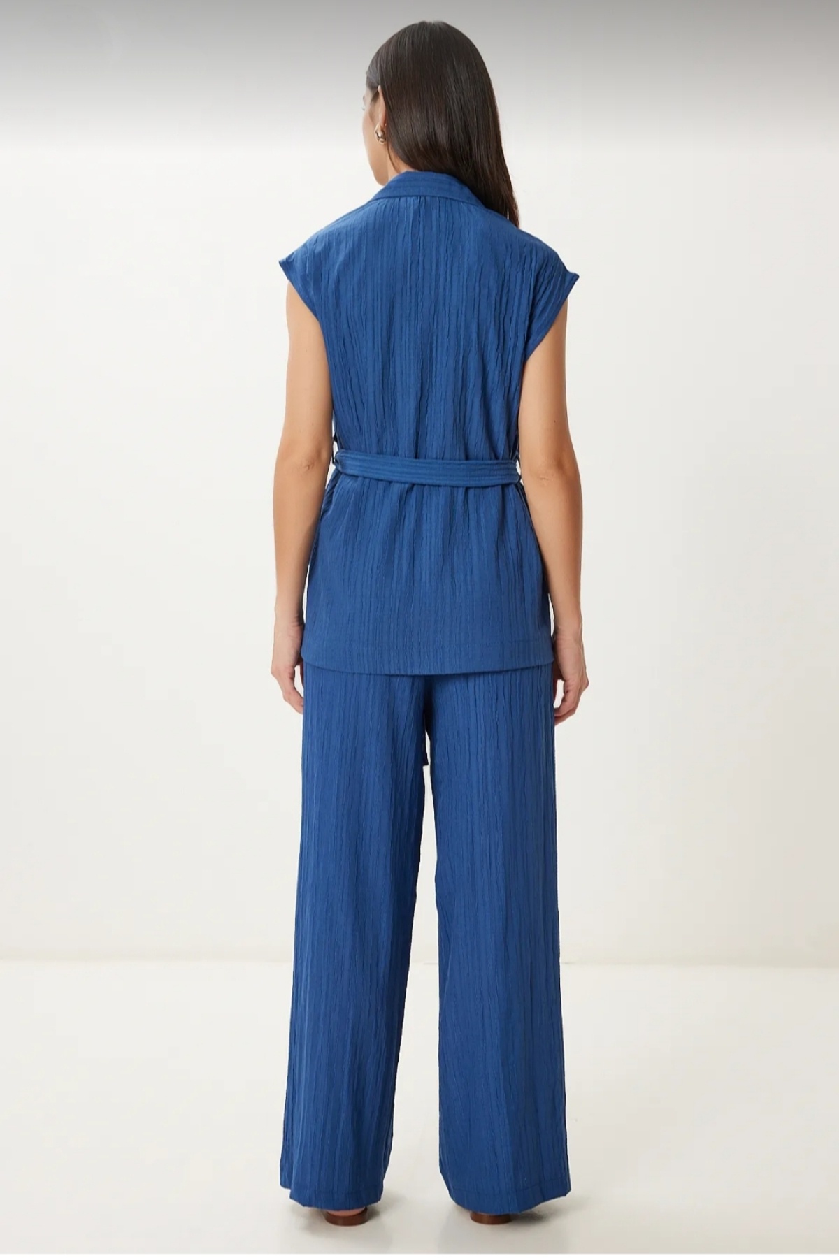 Yelekli Keten Takım Mavi Yelekli Keten Takım Mavi melih44 XL