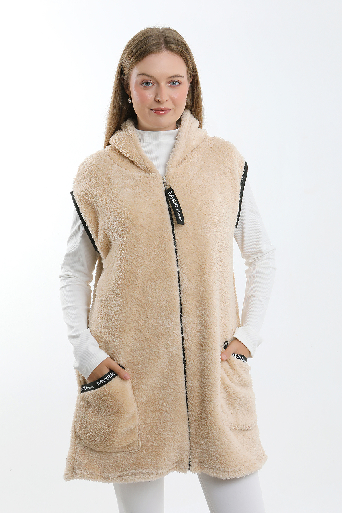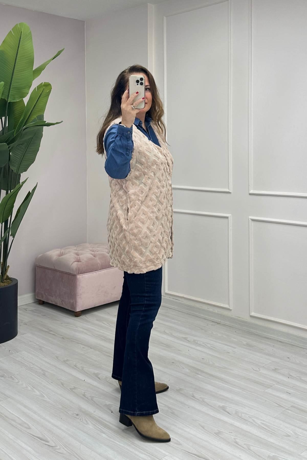 Peluş Kolsuz Yelek -Somon Peluş Kolsuz Yelek -Somon MS0000155 44-48