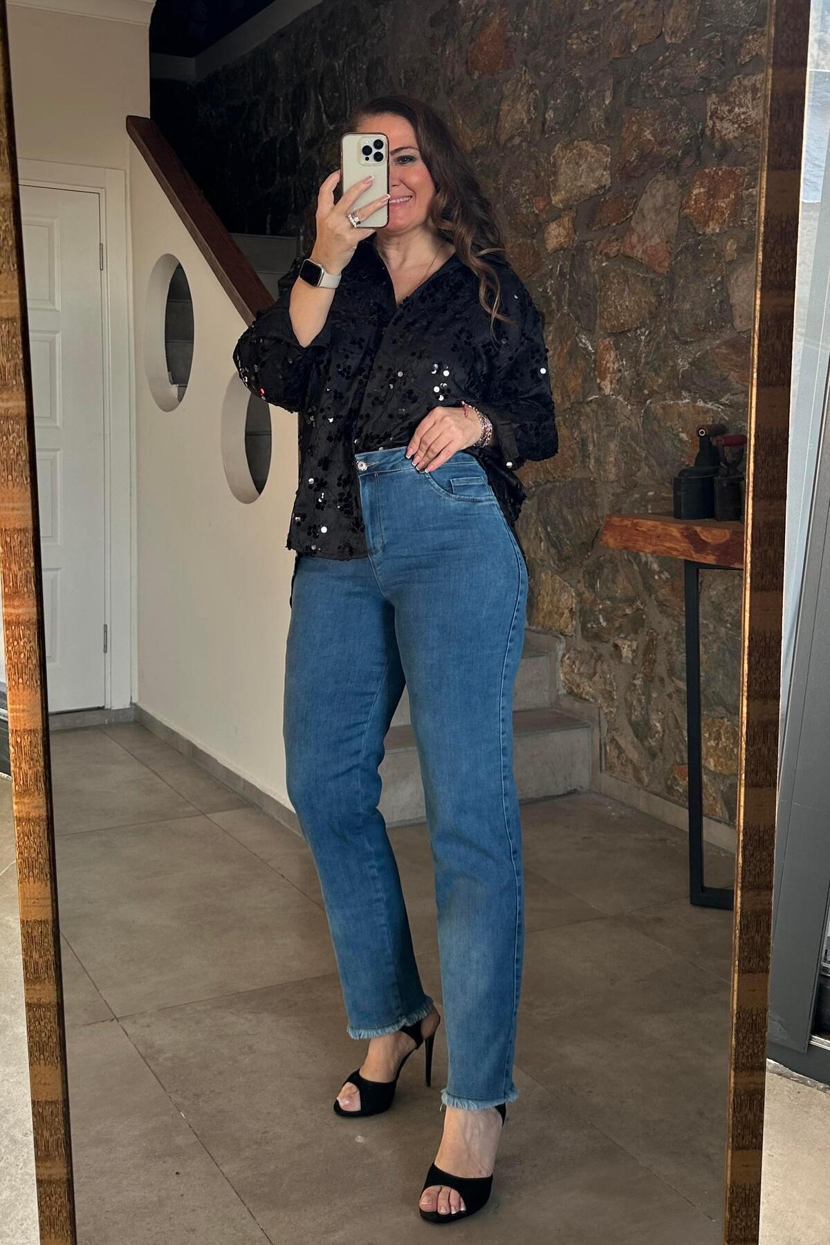 Paça Püsküllü Jean Mavi Paça Püsküllü Jean Mavi MS0000176 48