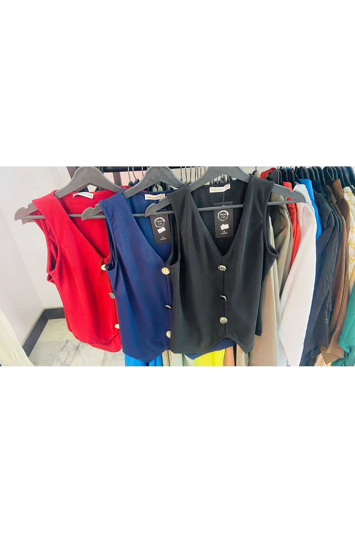 Şık Düğme Tasarımlı Yelek Bluz Şık Düğme Tasarımlı Yelek Bluz 649 XL