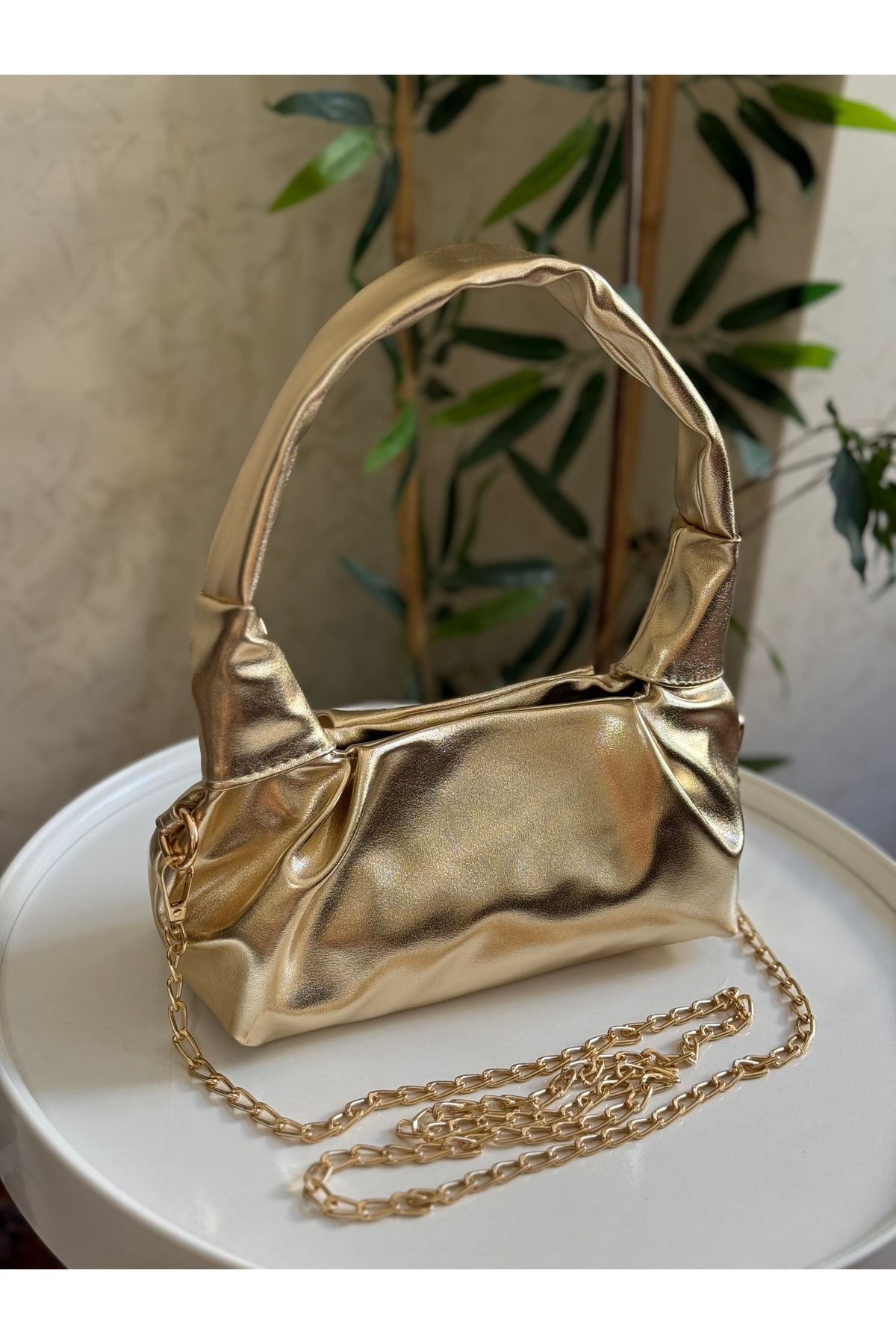 Gold Kadın Orta Boy Bohça Form Gold Aksesuarlı Şık El Çantası Ve Çapraz Askılı Omuz Çantası Gold Kadın Orta Boy Bohça Form Gold Aksesuarlı Şık El Çantası Ve Çapraz Askılı Omuz Çantası ENCLBOHCA001 تک سایز