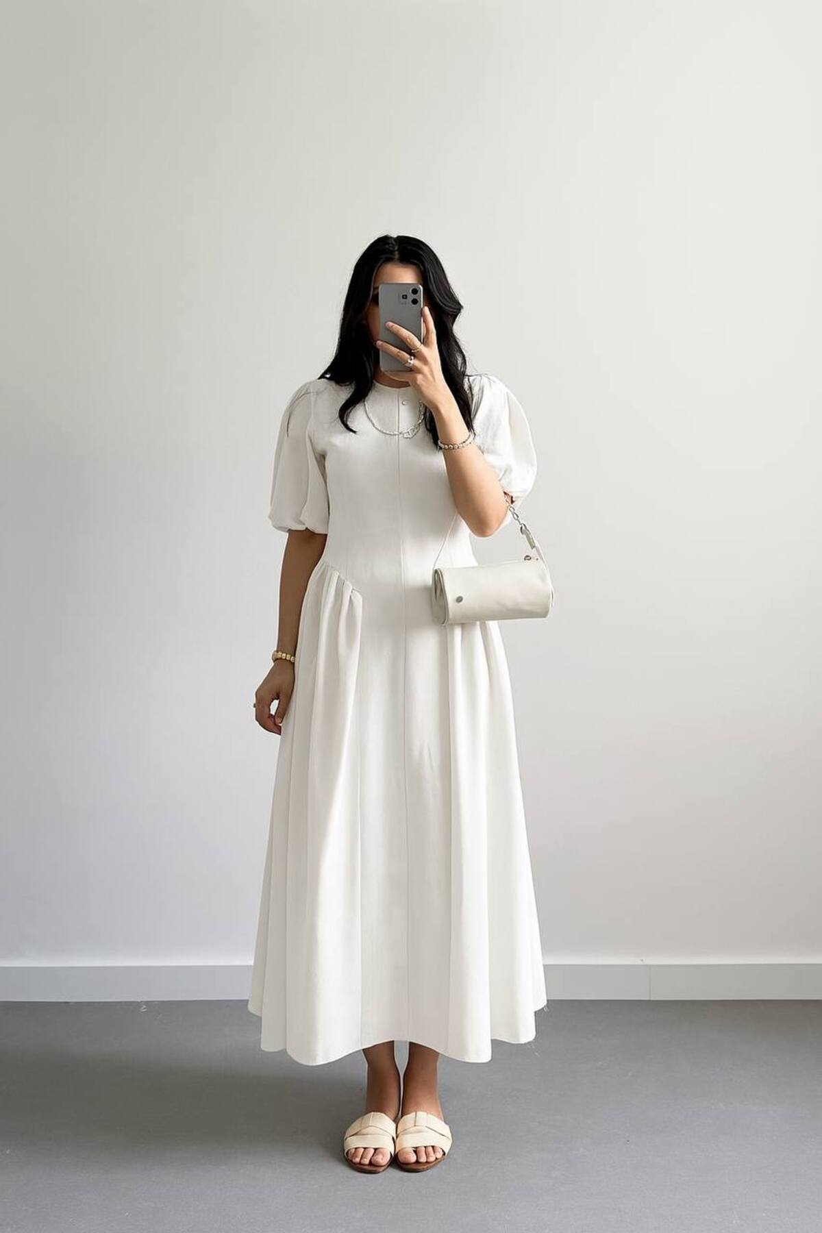 Karpuz Kol Büzgülü Midi Boy Elbise Karpuz Kol Büzgülü Midi Boy Elbise AHZ-32 L