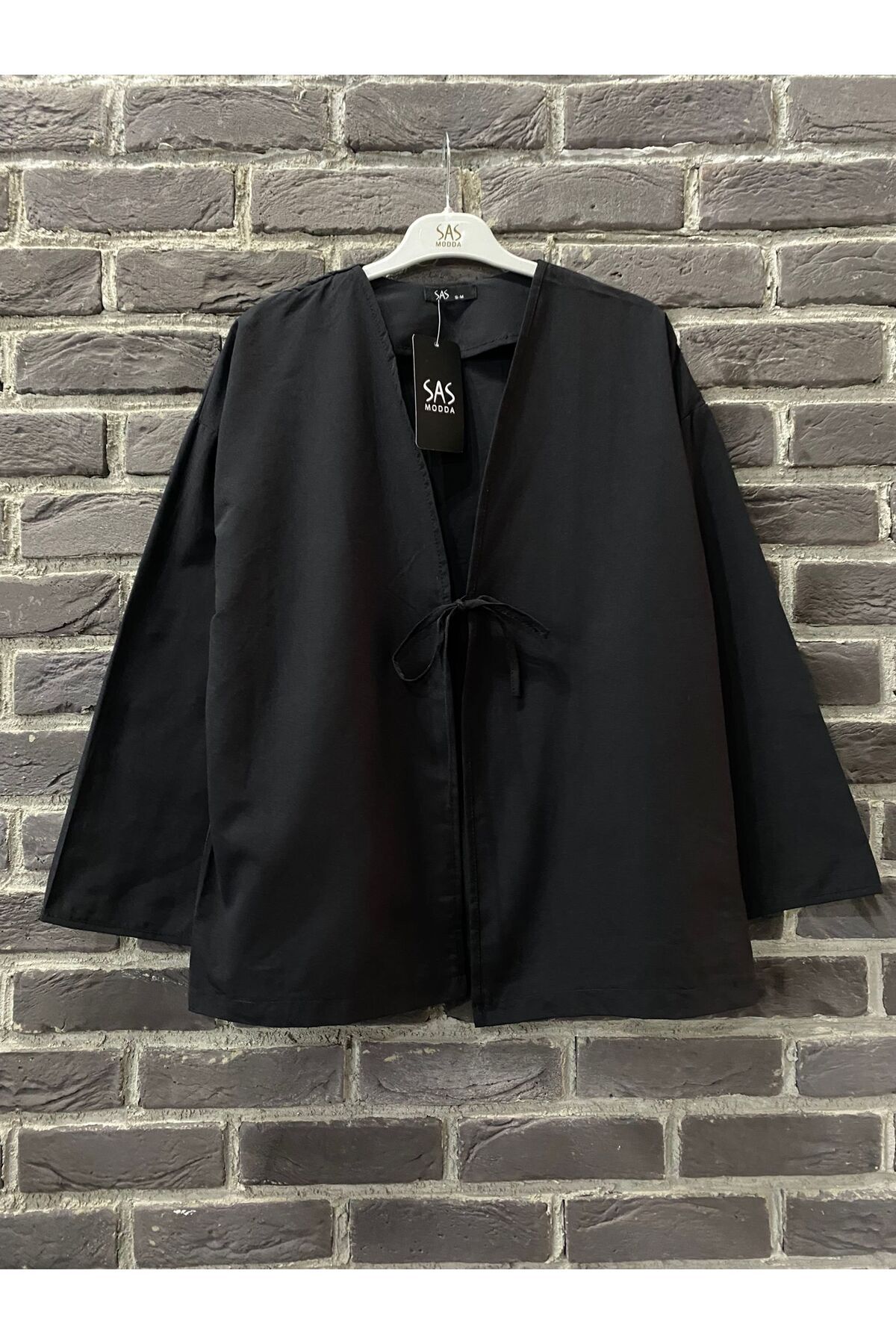 Bağlama Detaylı Keten Kimono - Ferah Kesim Bağlama Detaylı Keten Kimono - Ferah Kesim sas13051 L/XL