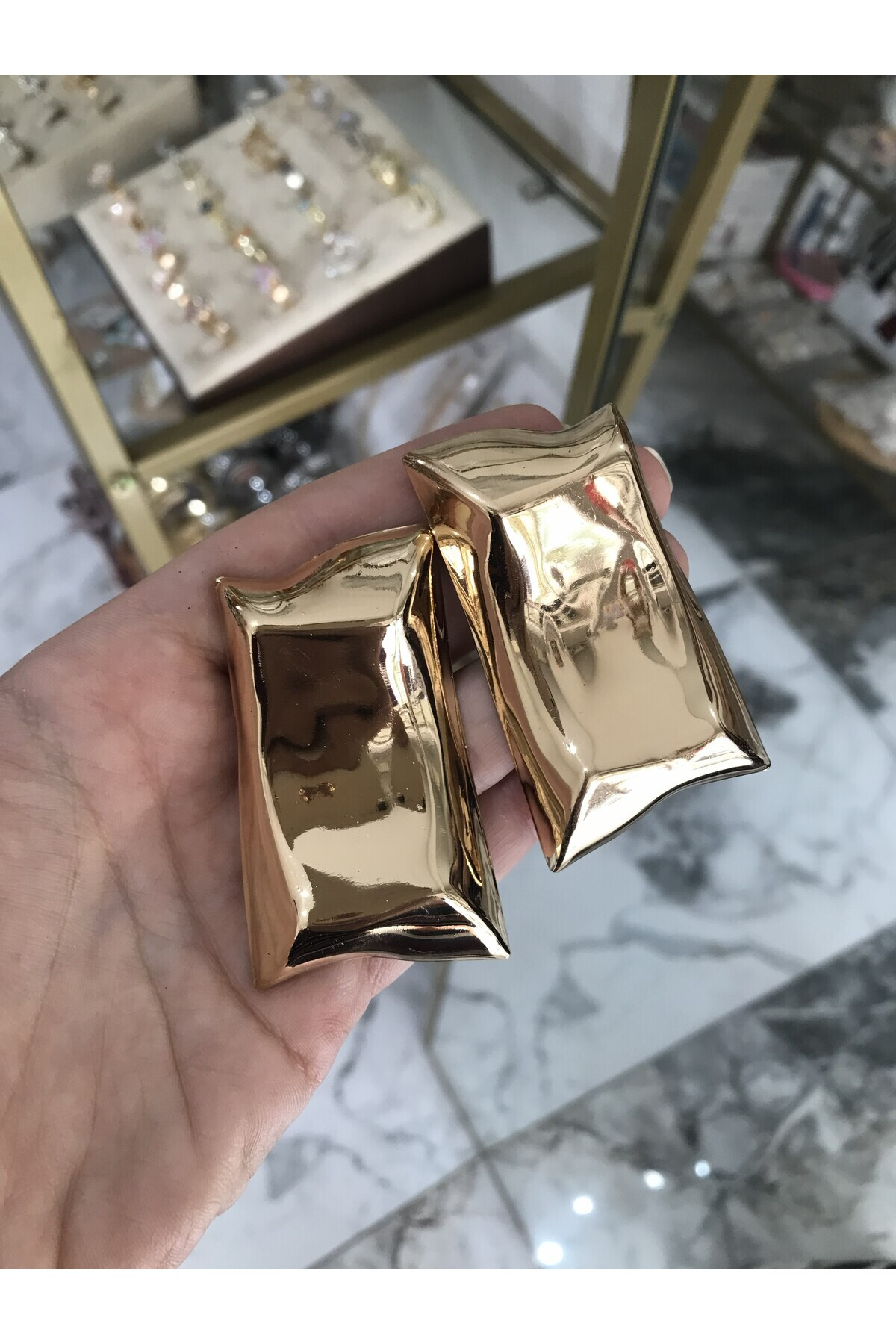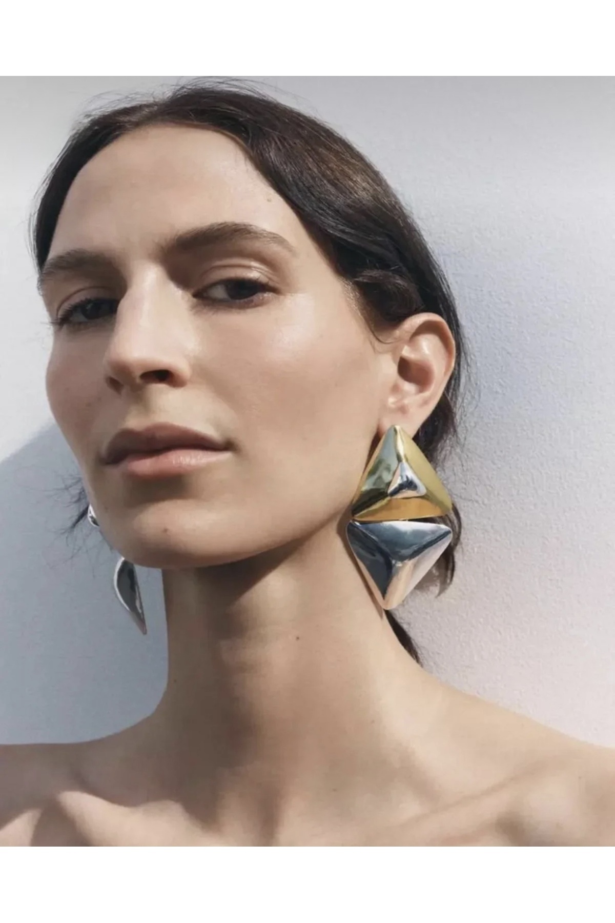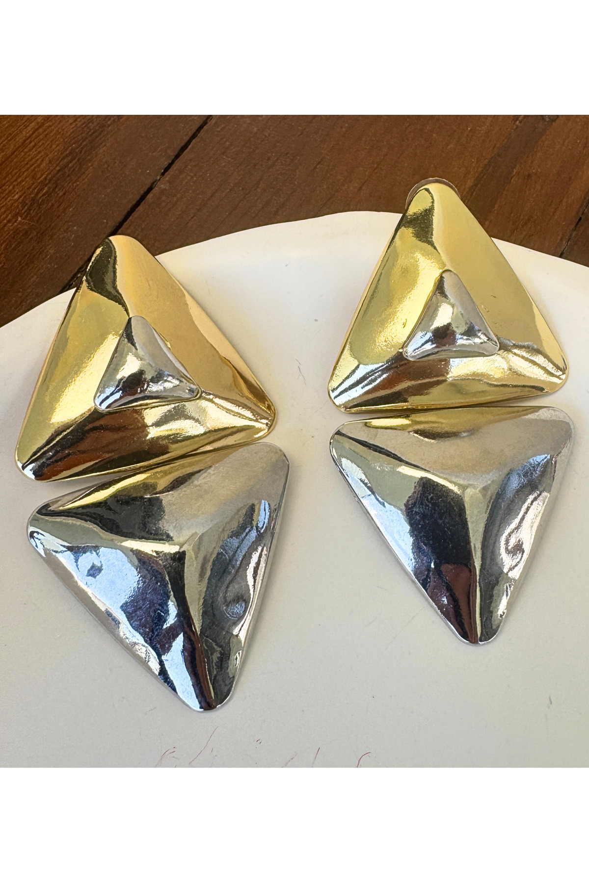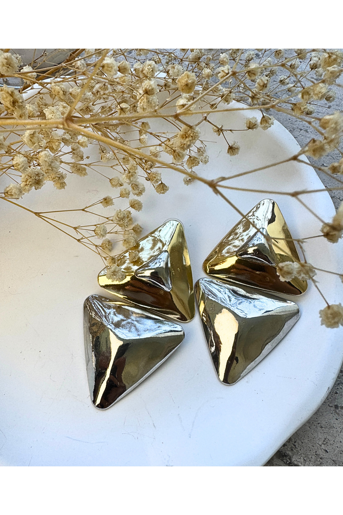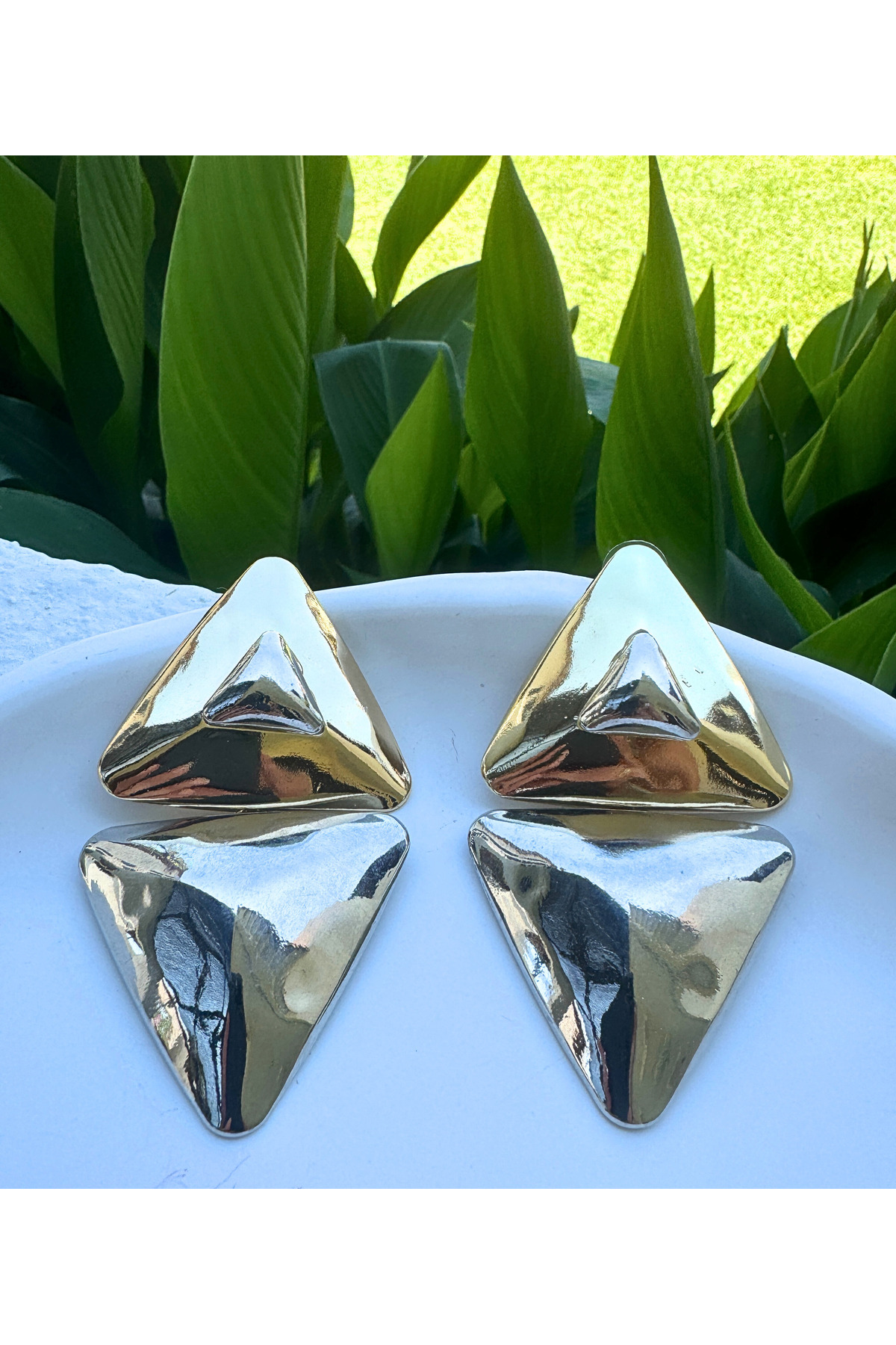 Modern İPKYL Geometrik Üçgen Altın / Gümüş Küpe Modern İPKYL Geometrik Üçgen Altın / Gümüş Küpe LYR-234-KPE تک سایز
