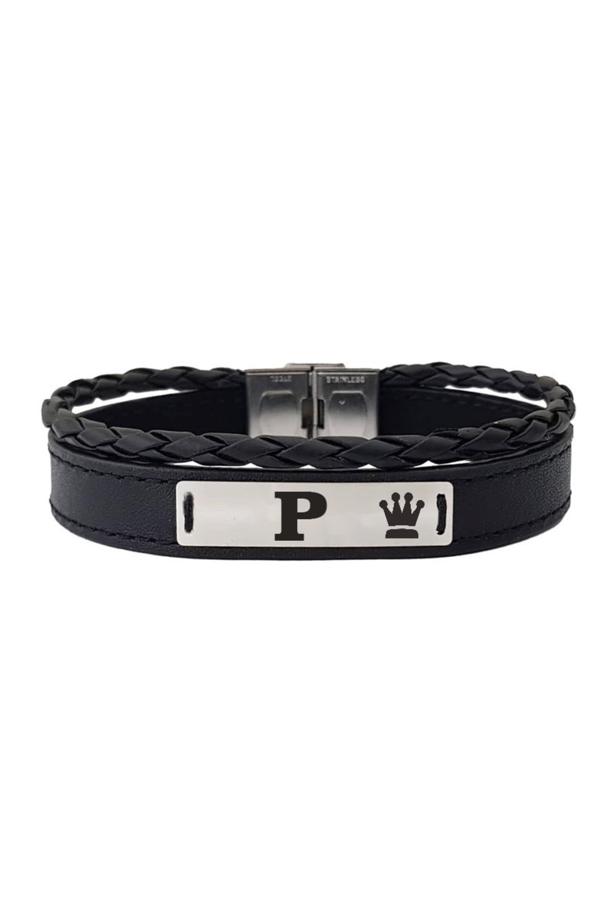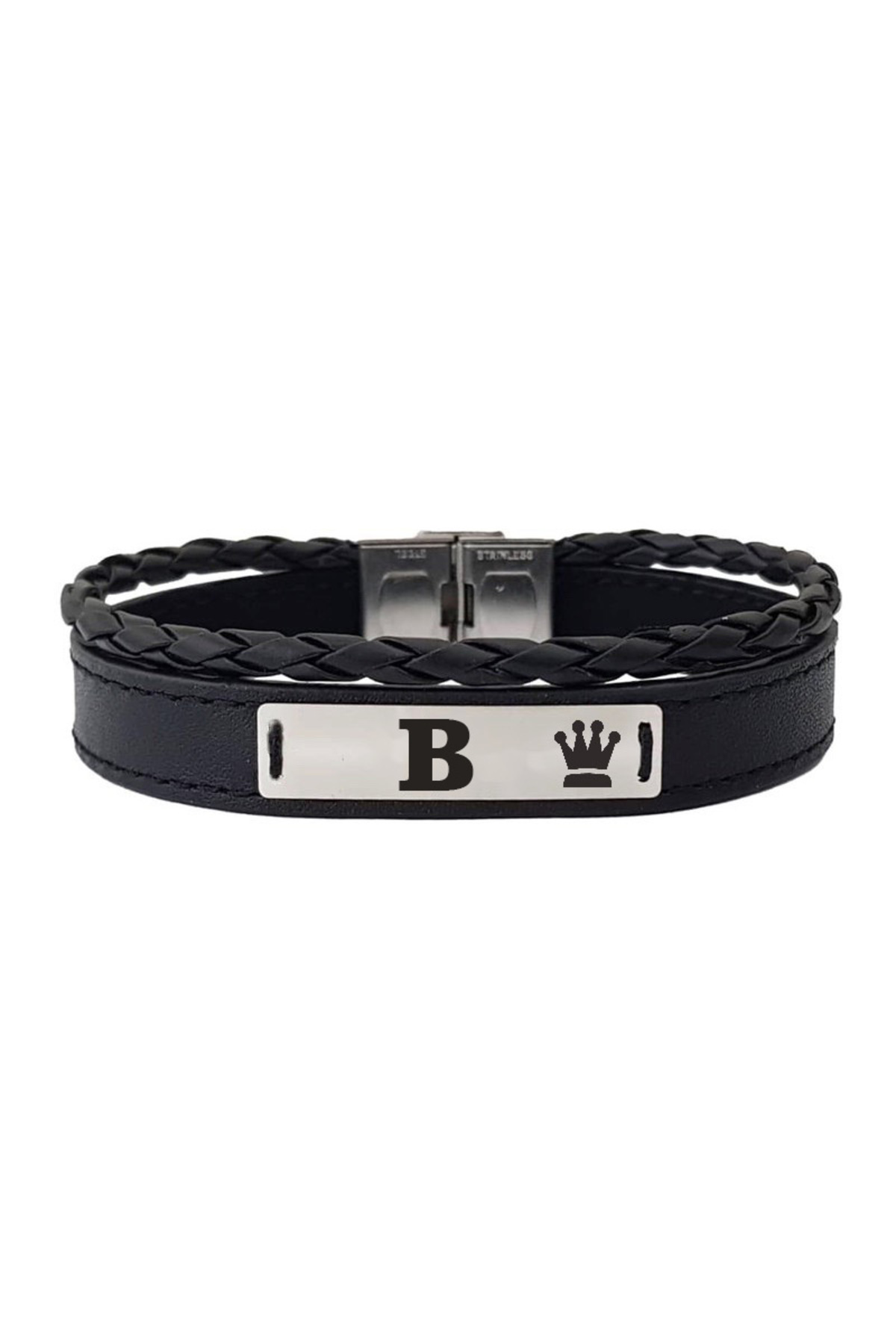 F Harfine Özel Hakiki Siyah Derili Taç Motifli 925 Ayar Gümüş Plakalı Hediye Bileklik-535harf F Harfine Özel Hakiki Siyah Derili Taç Motifli 925 Ayar Gümüş Plakalı Hediye Bileklik-535harf 535-dabafnm-baftj-MO2 22 cm
