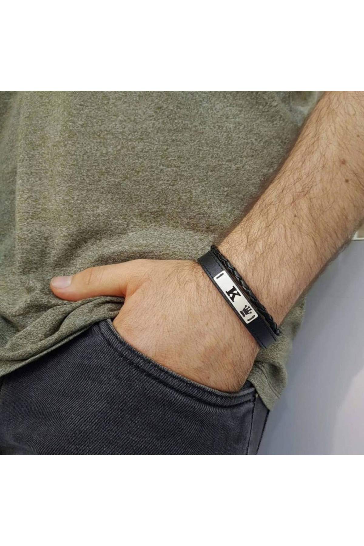 K Harfine Özel Taç Motifli Hakiki Siyah Derili 925 Ayar Gümüş Plakalı Hediye Bileklik-535harf K Harfine Özel Taç Motifli Hakiki Siyah Derili 925 Ayar Gümüş Plakalı Hediye Bileklik-535harf 535-dabafnm-baftj-MO2 22 cm