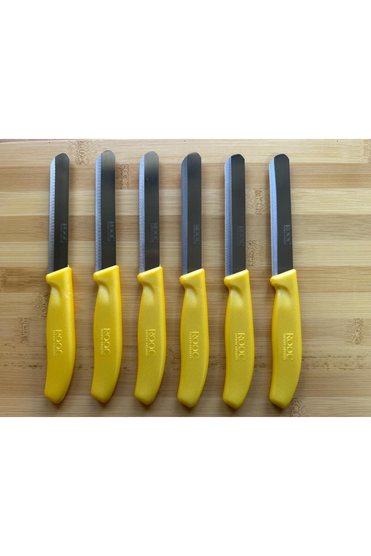 6'lı Ultra Keskin Tırtıklı Bıçak Seti, Parlak Sarı, 22 Cm %100 Garantili Paslanmaz Çelik 6'lı Ultra Keskin Tırtıklı Bıçak Seti, Parlak Sarı, 22 Cm %100 Garantili Paslanmaz Çelik MKR-213 تک سایز