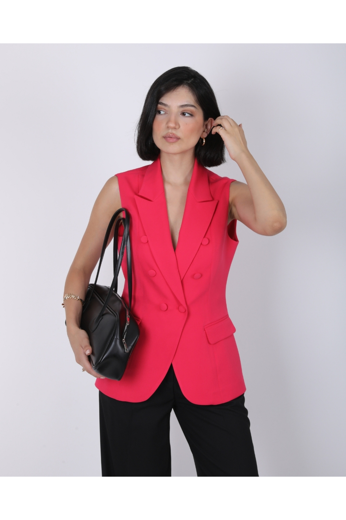 Kadın Fuşya Düğme Detaylı Blazer Yelek Kadın Fuşya Düğme Detaylı Blazer Yelek YLK03 XL
