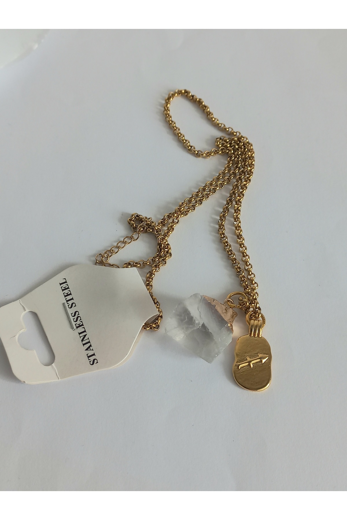 - Materyal Bileşeni : Pirinç üzerine altın kaplama yay burç sembolü ve uyumlu berrak kuvars taşı ile çelik zincir üzerine tasarlanmıştır.