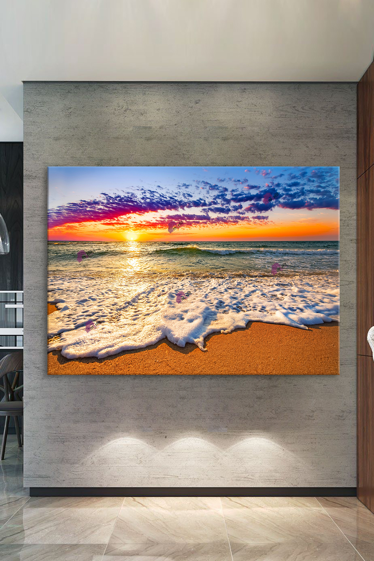 Kumsal Deniz Gün Batımı Manzara Modern Kanvas Tablo Kumsal Deniz Gün Batımı Manzara Modern Kanvas Tablo P20N123 140 x 100