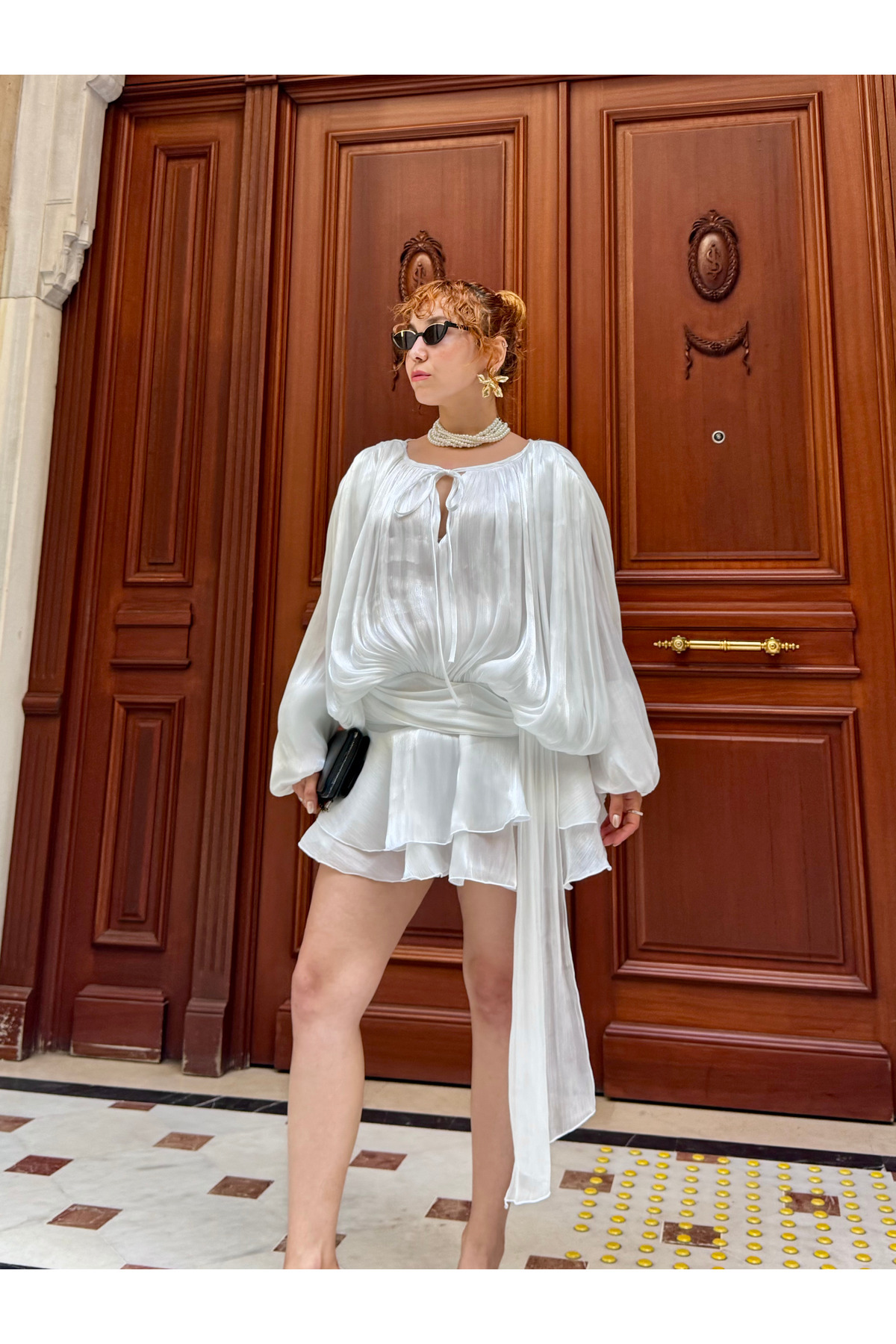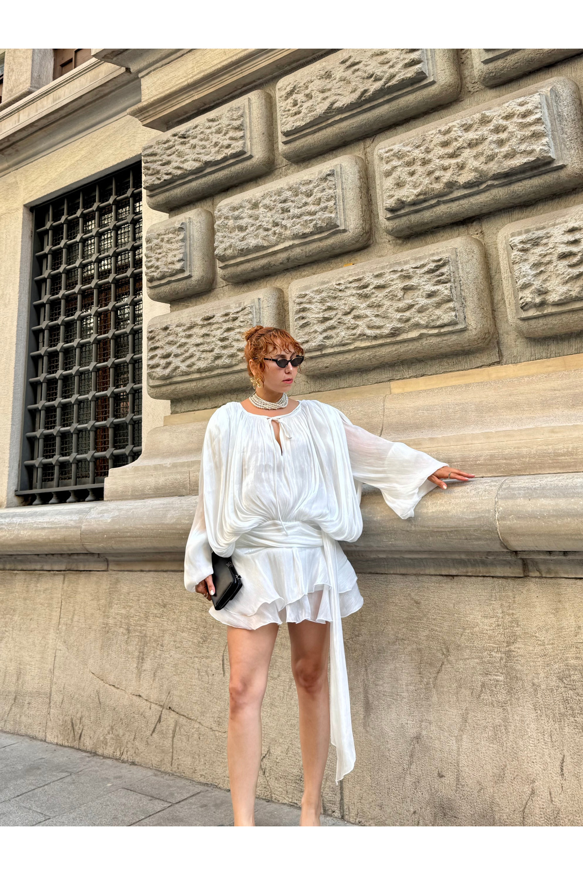 Premium Tasarım Trend Süit Kolları Volanlı Fırfırlı Mini Tasarım Şortlu Elbise Premium Tasarım Trend Süit Kolları Volanlı Fırfırlı Mini Tasarım Şortlu Elbise L