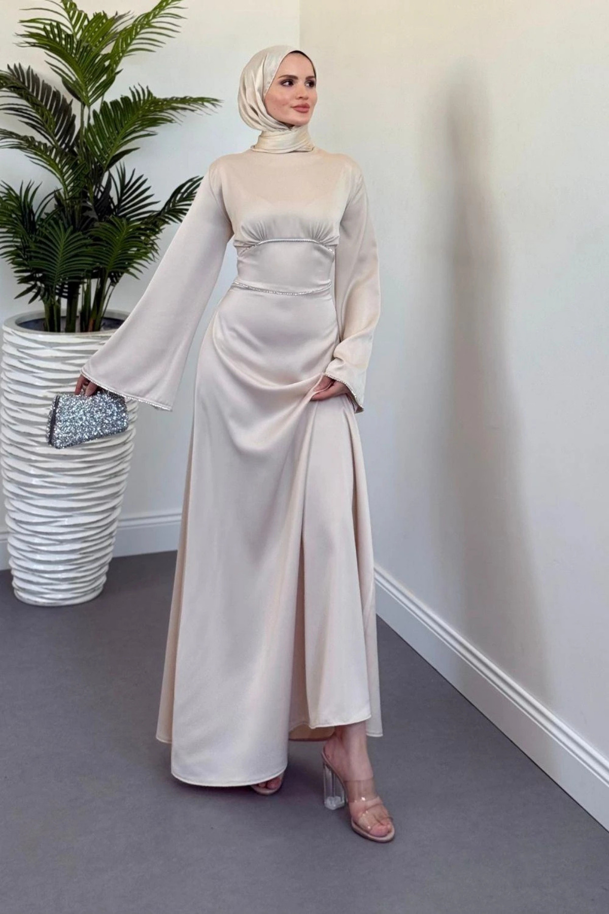 Kadın Kolu Ve Beli Baget Taşlı Saten Abiye Kadın Kolu Ve Beli Baget Taşlı Saten Abiye CRN72 42