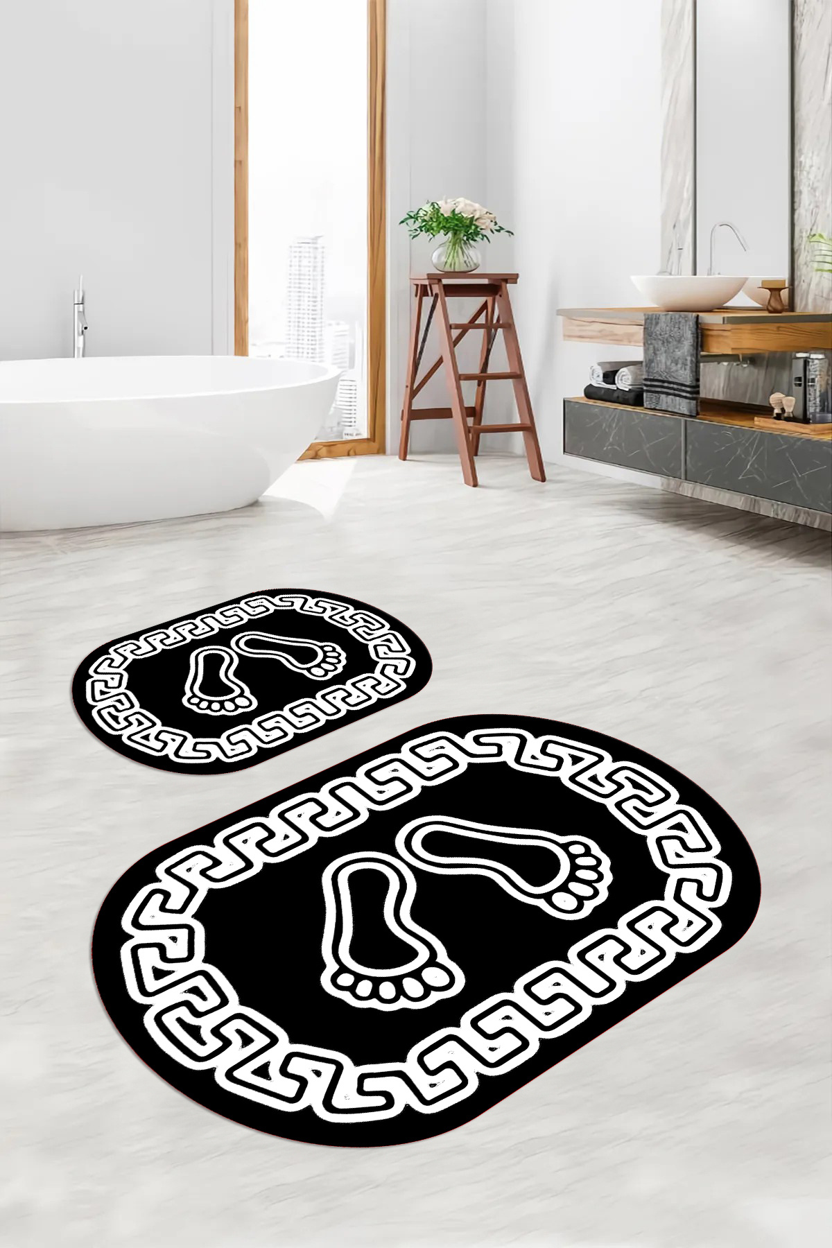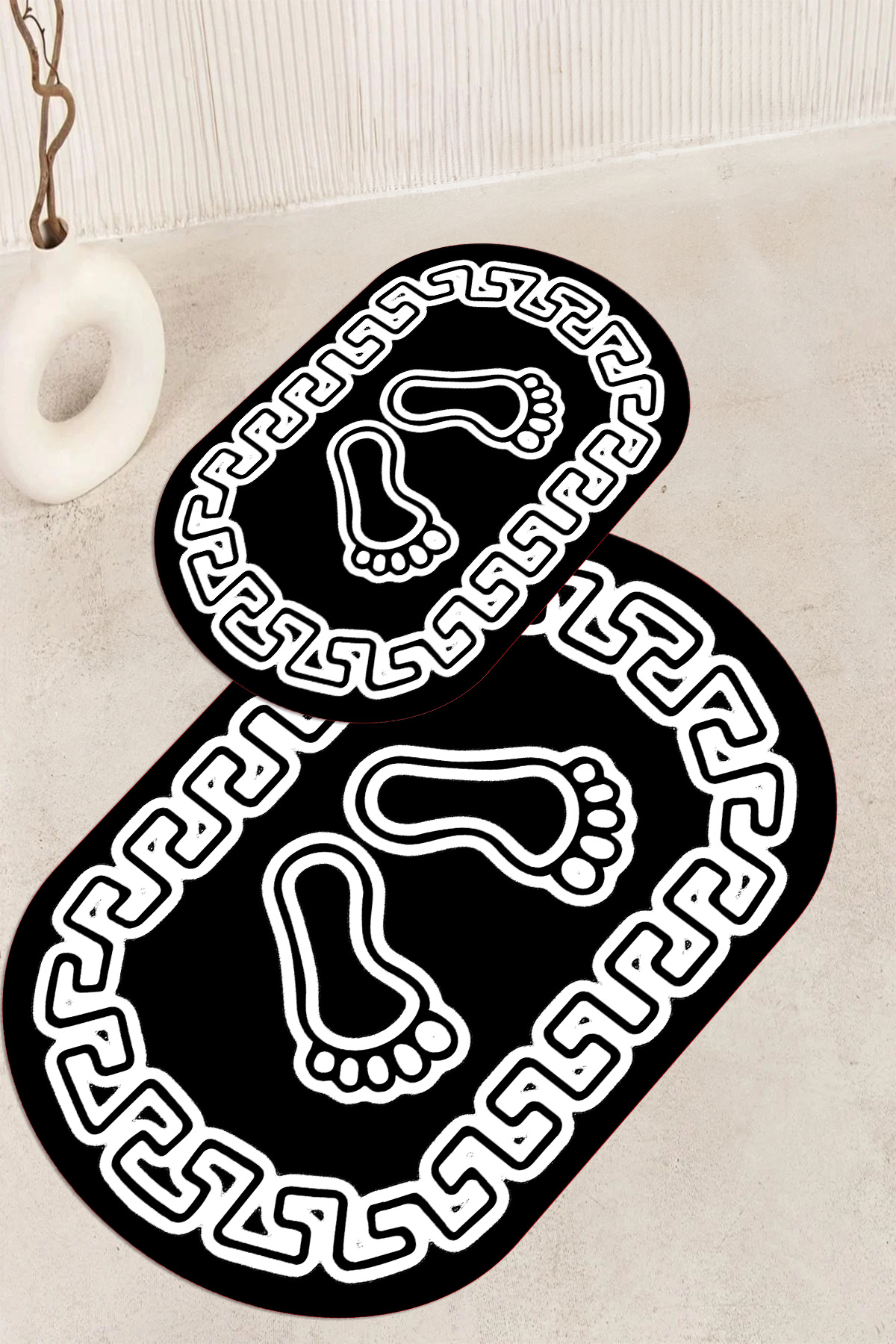 Dijital Kaymaz Taban Yıkanabilir Ayak İzi Desen Oval Banyo Paspası 2'li Klozet Takımı Dijital Kaymaz Taban Yıkanabilir Ayak İzi Desen Oval Banyo Paspası 2'li Klozet Takımı O-KLOZET-101 تک سایز