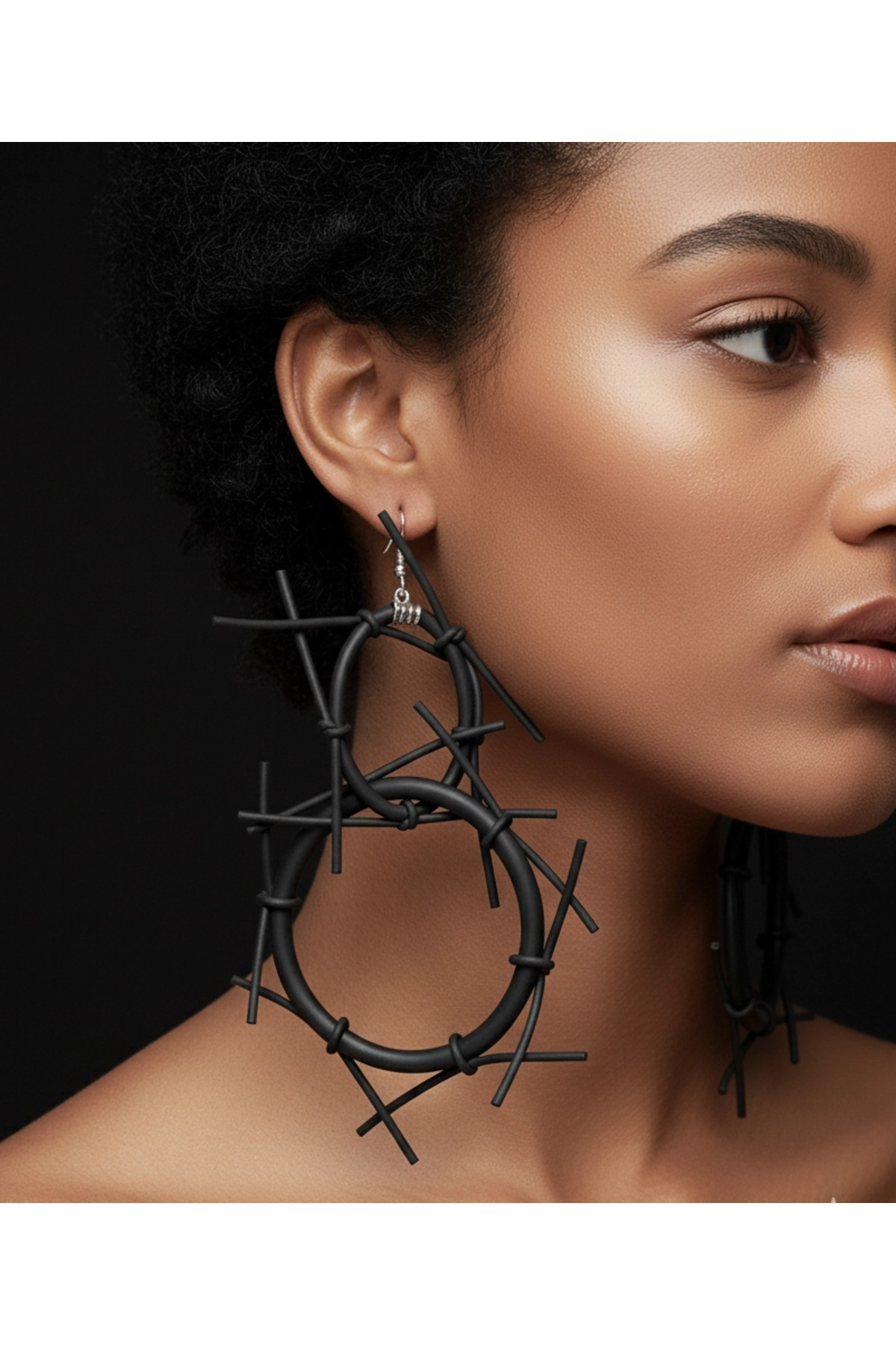 Siyah bohem stil büyük cesur halka stil moda tasarım sallantılı küpe Siyah bohem stil büyük cesur halka stil moda tasarım sallantılı küpe KP12440 تک سایز