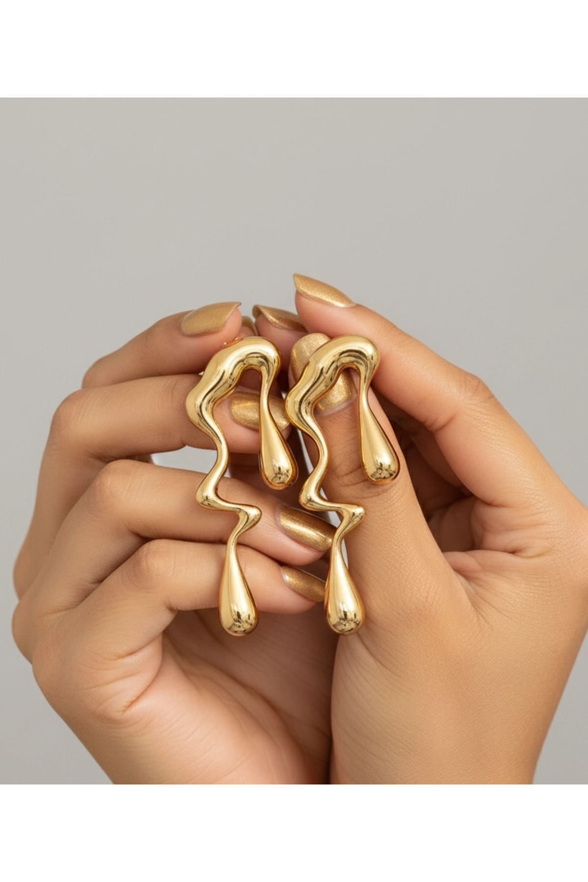 Damla tasarım geometrik cesur sanatsal tatil plaj gece büyük gold halka sallantılı küpe Damla tasarım geometrik cesur sanatsal tatil plaj gece büyük gold halka sallantılı küpe KP12407 تک سایز