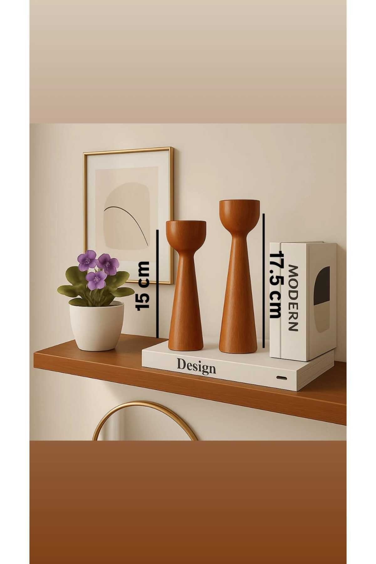 Doğal Ahşap Şamdan Seti 17.5cm & 15cm Tik El Yapımı, Rustik Dekoratif 2'li Mumluk Modern Doğal Ahşap Şamdan Seti 17.5cm & 15cm Tik El Yapımı, Rustik Dekoratif 2'li Mumluk Modern 12samtik2 تک سایز