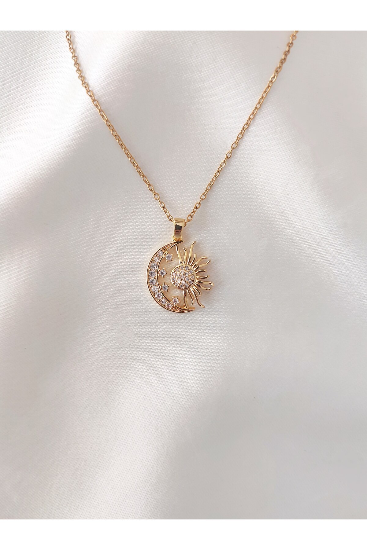 Altın Renk Güneş Ay Yıldız Figürlü Zarif Kolye Altın Renk Güneş Ay Yıldız Figürlü Zarif Kolye 53719199 Standart