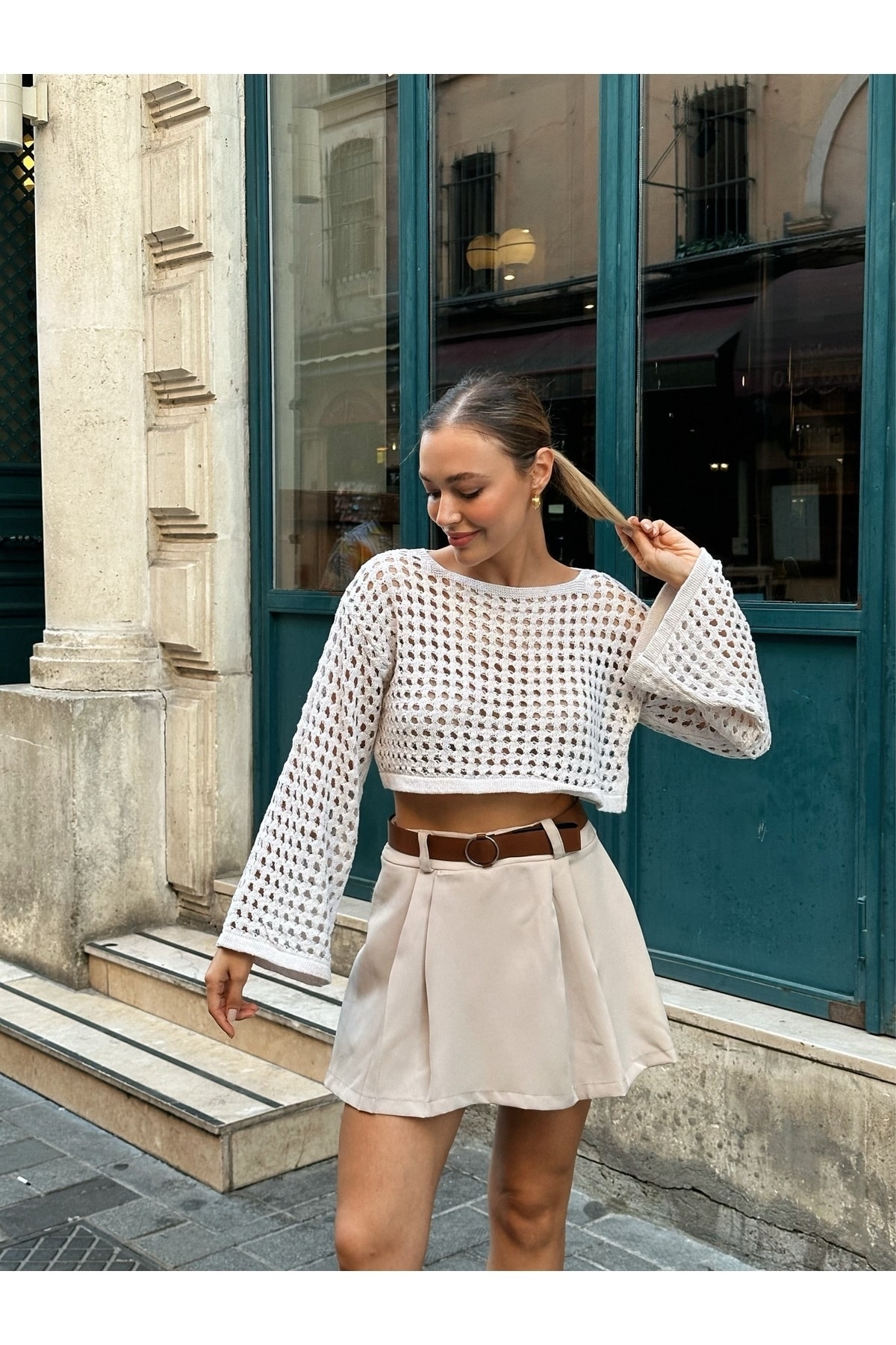 Kadın Krem Renk Dantelli Crop Kadın Krem Renk Dantelli Crop B1906 L