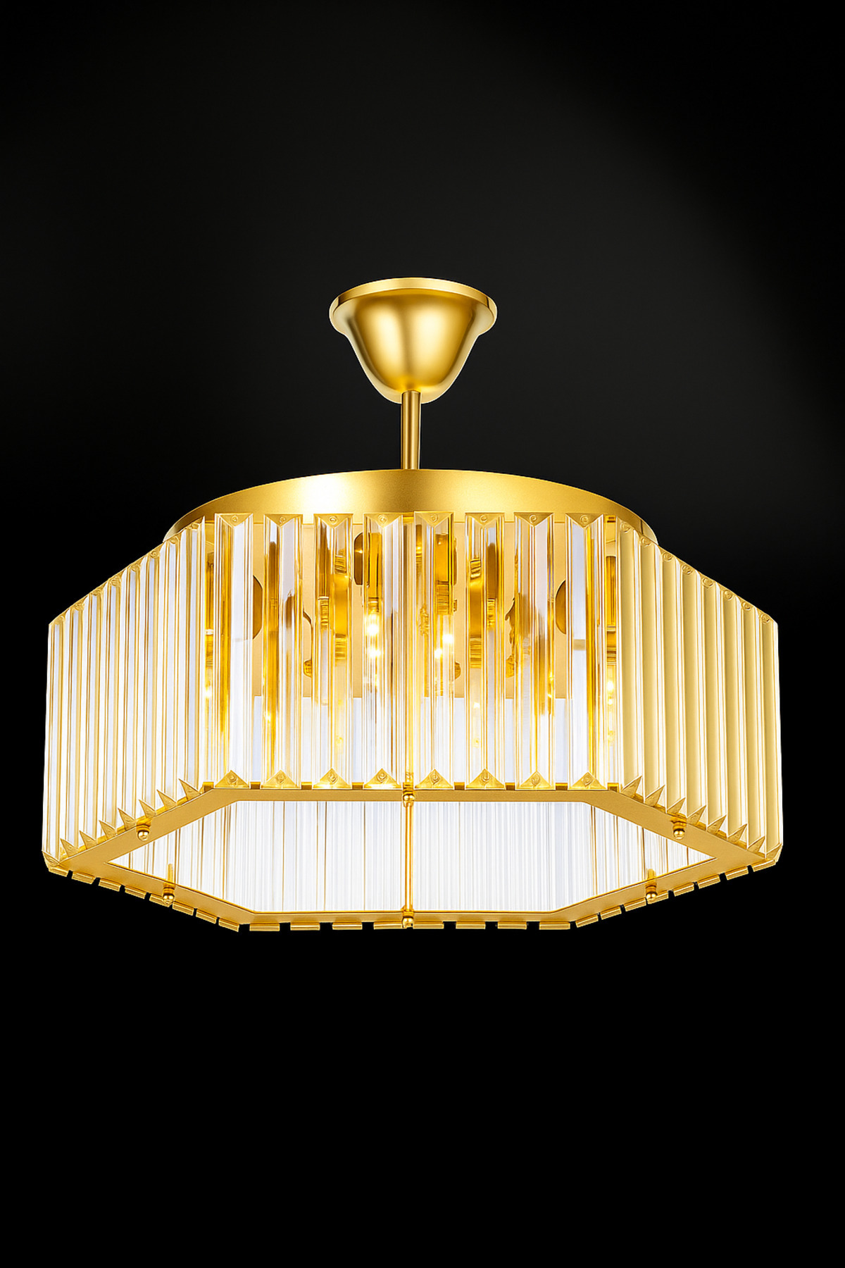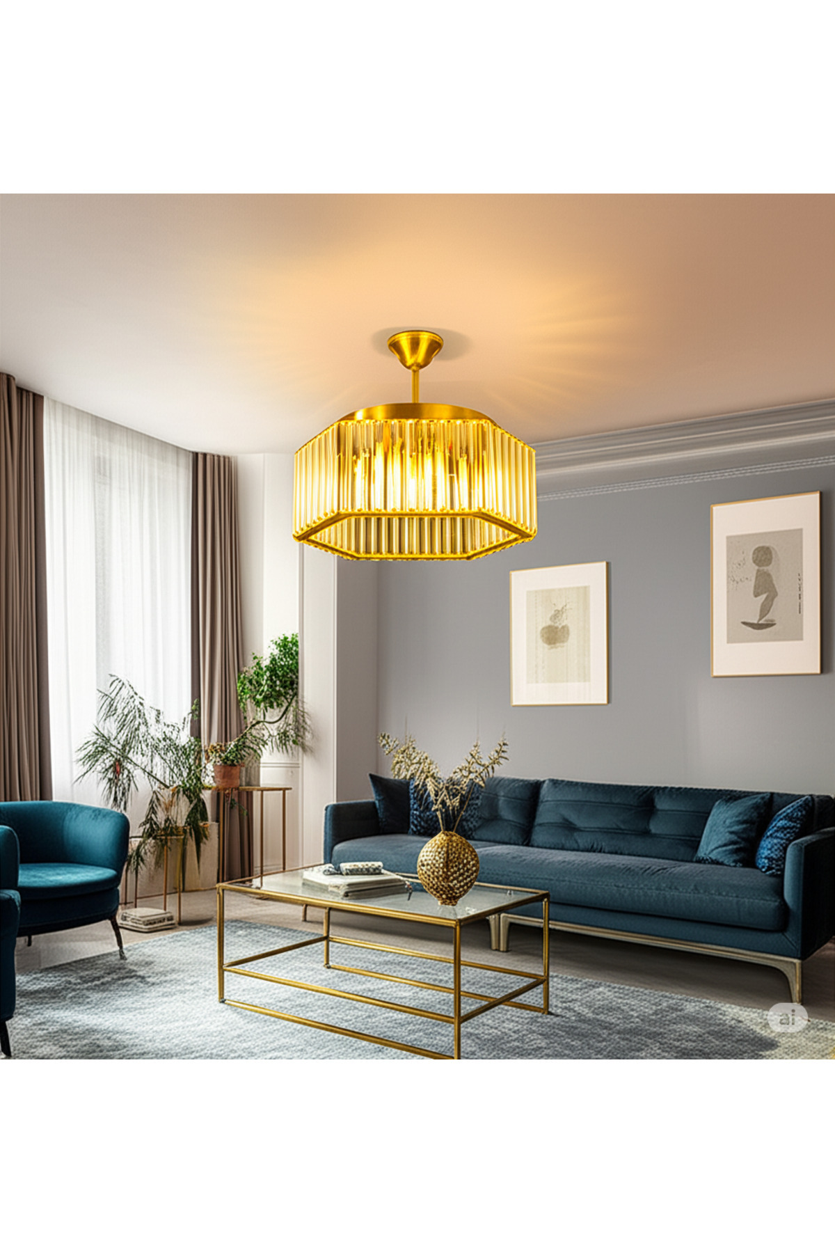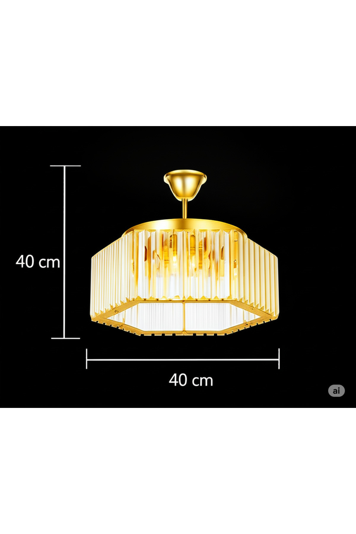 Altıgen Kristal Taşlı 40 cm Modern Sarkıt Gold Salon Çocuk Mutfak Hol Oda Avize Altıgen Kristal Taşlı 40 cm Modern Sarkıt Gold Salon Çocuk Mutfak Hol Oda Avize 640G تک سایز