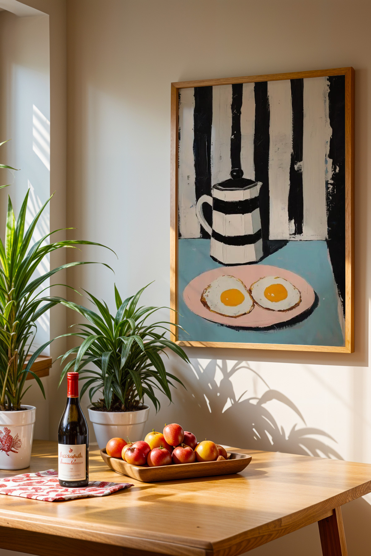 Kahve ve Yumurta Retro Tasarım KTB Doğal Ahşap Çerçeveli Mutfak Duvar Tablosu Kahve ve Yumurta Retro Tasarım KTB Doğal Ahşap Çerçeveli Mutfak Duvar Tablosu NOİR-1L-1218 50 x 70