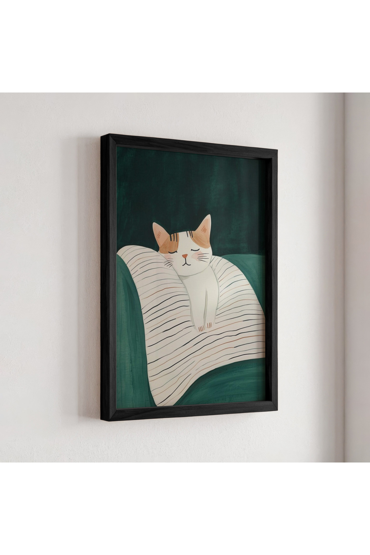 Sevimli Çizgi Stili Beyaz Kedi Doğal Ahşap Çerçeveli Duvar Tablosu Sevimli Çizgi Stili Beyaz Kedi Doğal Ahşap Çerçeveli Duvar Tablosu NOİR-1L-1105 50 x 70