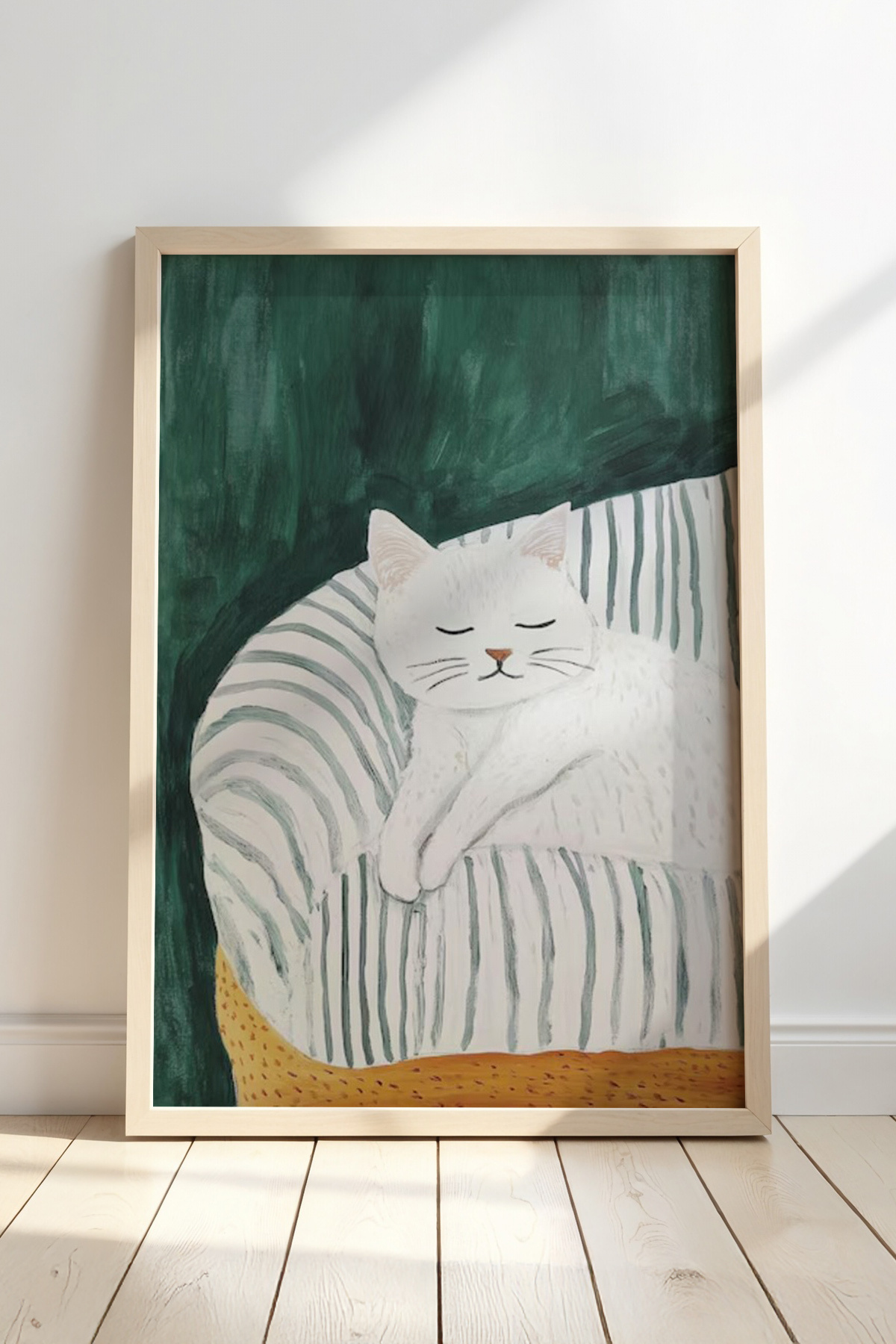 Uykulu Kedi Siyah Beyaz İllüstrasyon Doğal Ahşap Çerçeveli Duvar Tablosu Uykulu Kedi Siyah Beyaz İllüstrasyon Doğal Ahşap Çerçeveli Duvar Tablosu NOİR-1L-1119 50 x 70