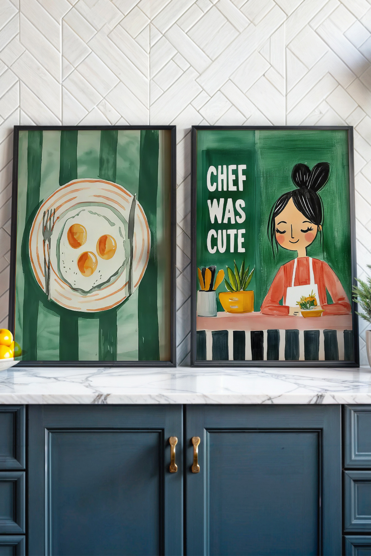 Yeşil Fonlu Yumurta ve Şef İllüstrasyonu KTB Doğal Ahşap Çerçeveli Mutfak Duvar Tablosu Yeşil Fonlu Yumurta ve Şef İllüstrasyonu KTB Doğal Ahşap Çerçeveli Mutfak Duvar Tablosu NOİR-2L-1015 50 x 70