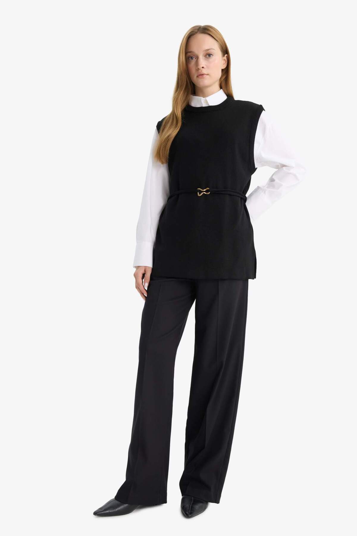 Bisiklet Yaka Kemer Detaylı Triko Süveter F0156AX25WN Bisiklet Yaka Kemer Detaylı Triko Süveter F0156AX25WN 2XL