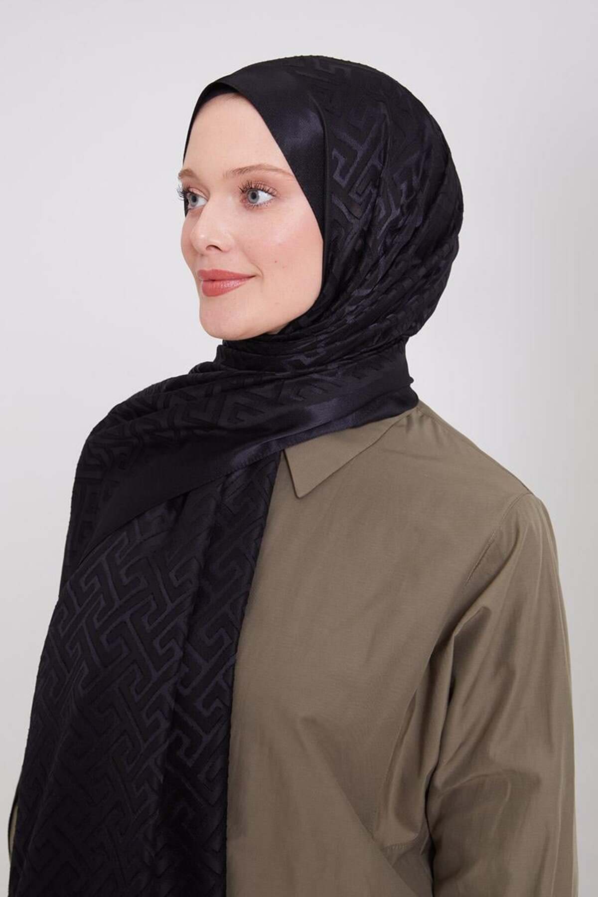 Siyah Labirent Desen Deluxe Devore Şal Siyah Labirent Desen Deluxe Devore Şal FIV.DLX.0006 70 x 190