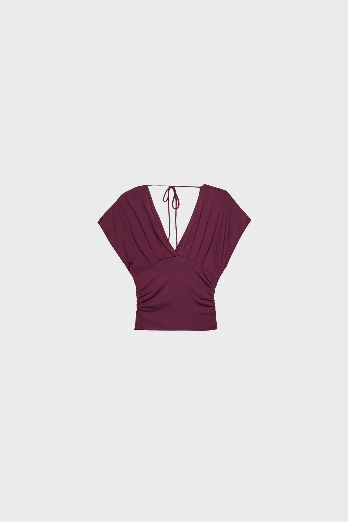 Büzgülü V Yaka Tişört Büzgülü V Yaka Tişört 06623821 XL
