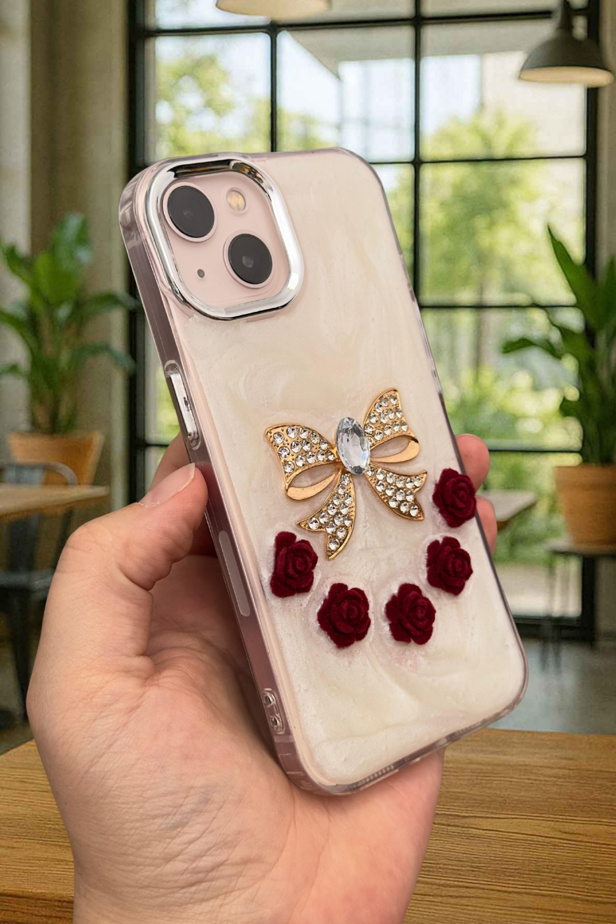 مشخصات فنی iPhone 15/14 ve 13 Uyumlu Epoksili 3D Figürlü Kalpli Kurdelalı Parlak Şık Moda Kılıf