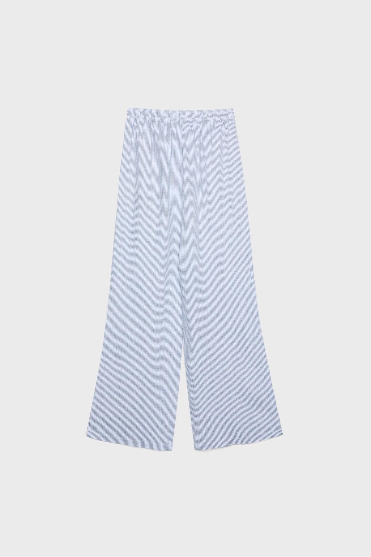 Çizgili ketenli dökümlü uzun pantolon Çizgili ketenli dökümlü uzun pantolon 01235380 XL