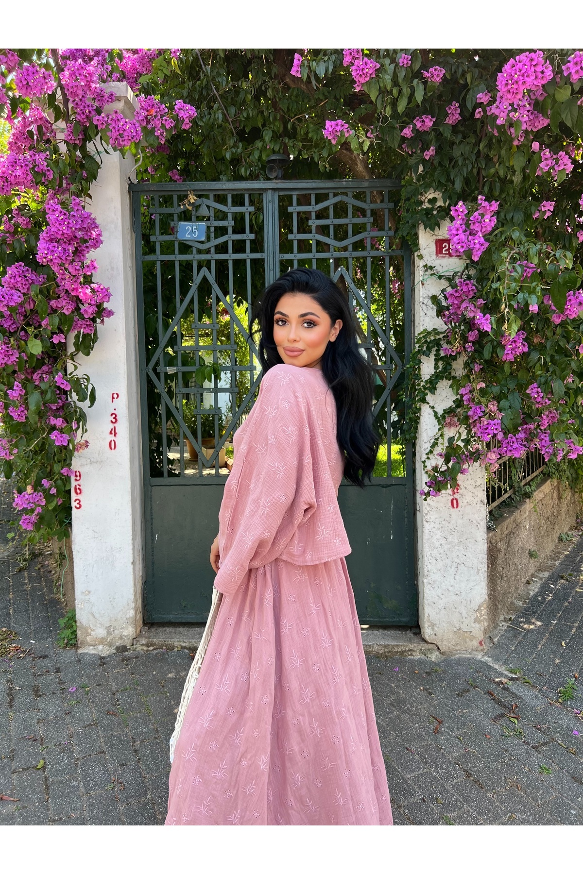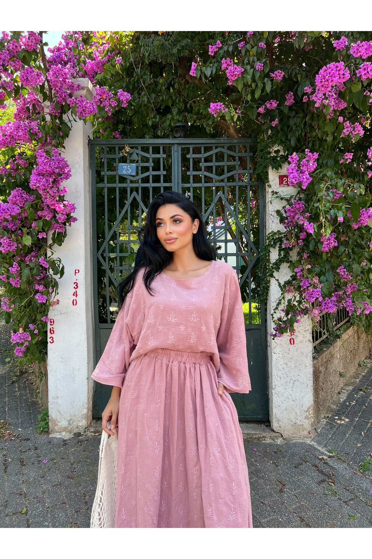 Müslin Pudra İşlemeli Salaş Bluz Ve Kloş Etek Takımı (İŞLEMELİ 2'Lİ TAKIM) Müslin Pudra İşlemeli Salaş Bluz Ve Kloş Etek Takımı (İŞLEMELİ 2'Lİ TAKIM) KCGM13397 L/XL