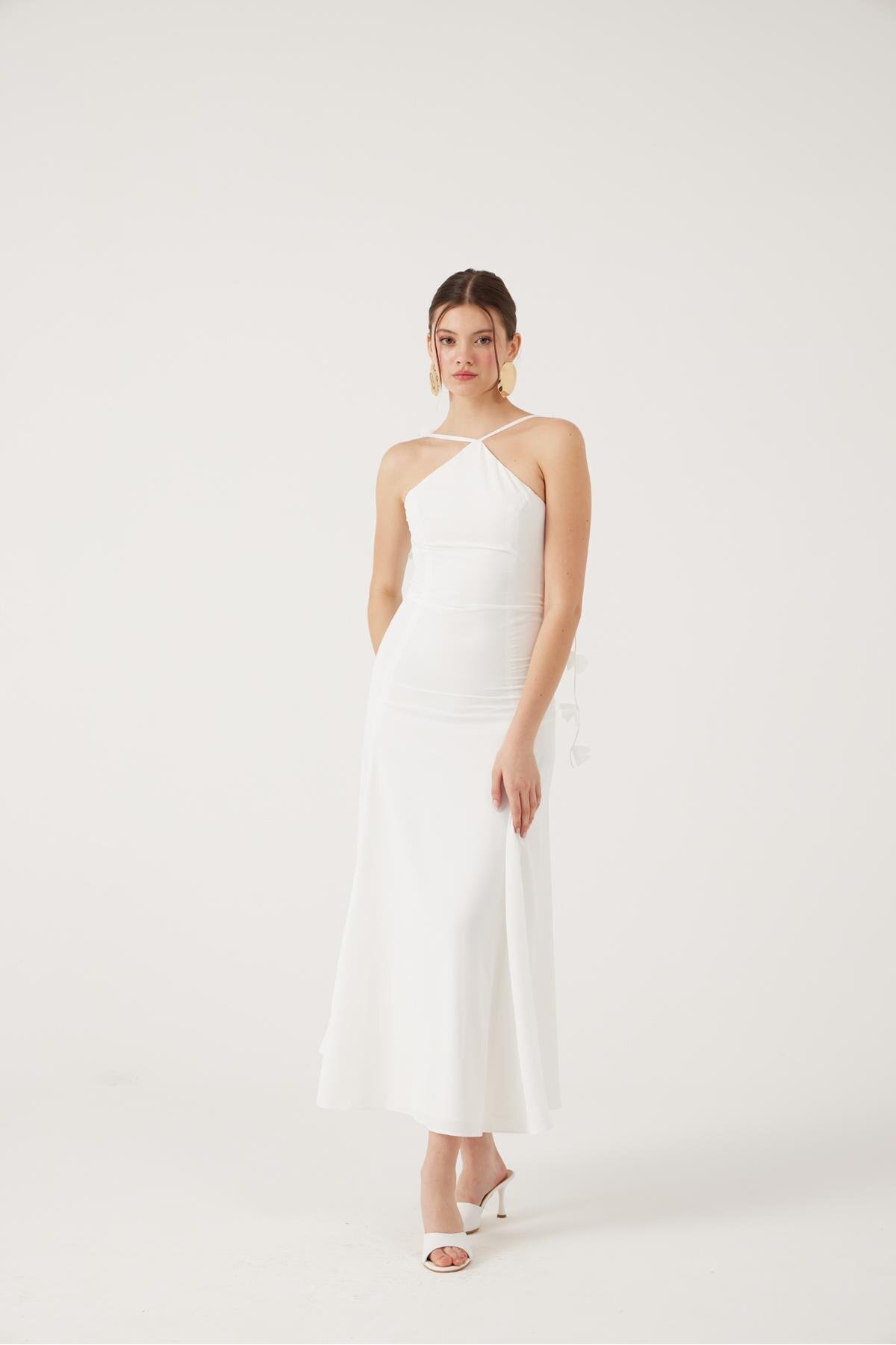 Askıları Yaprak Detaylı Uzun Raina Elbise Beyaz Askıları Yaprak Detaylı Uzun Raina Elbise Beyaz HLSS25-0042 L