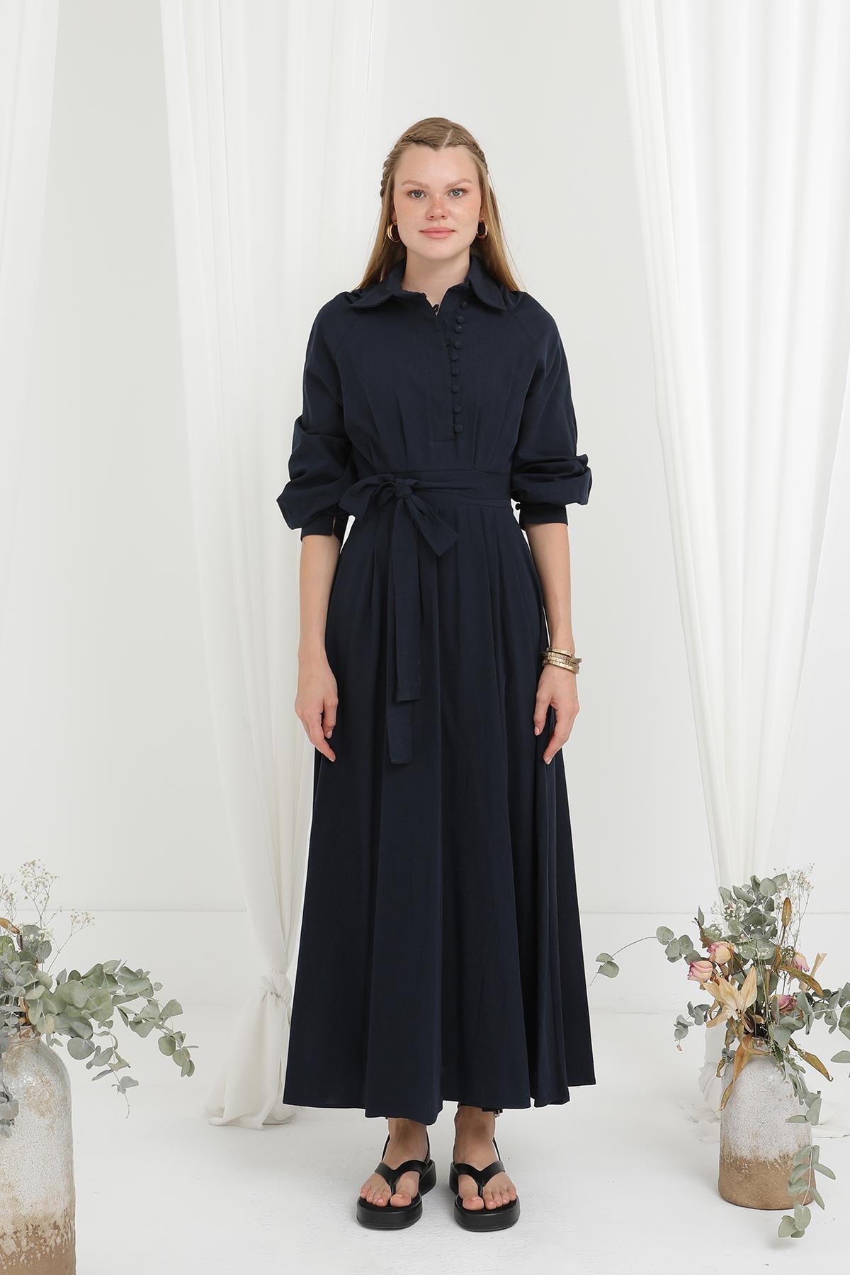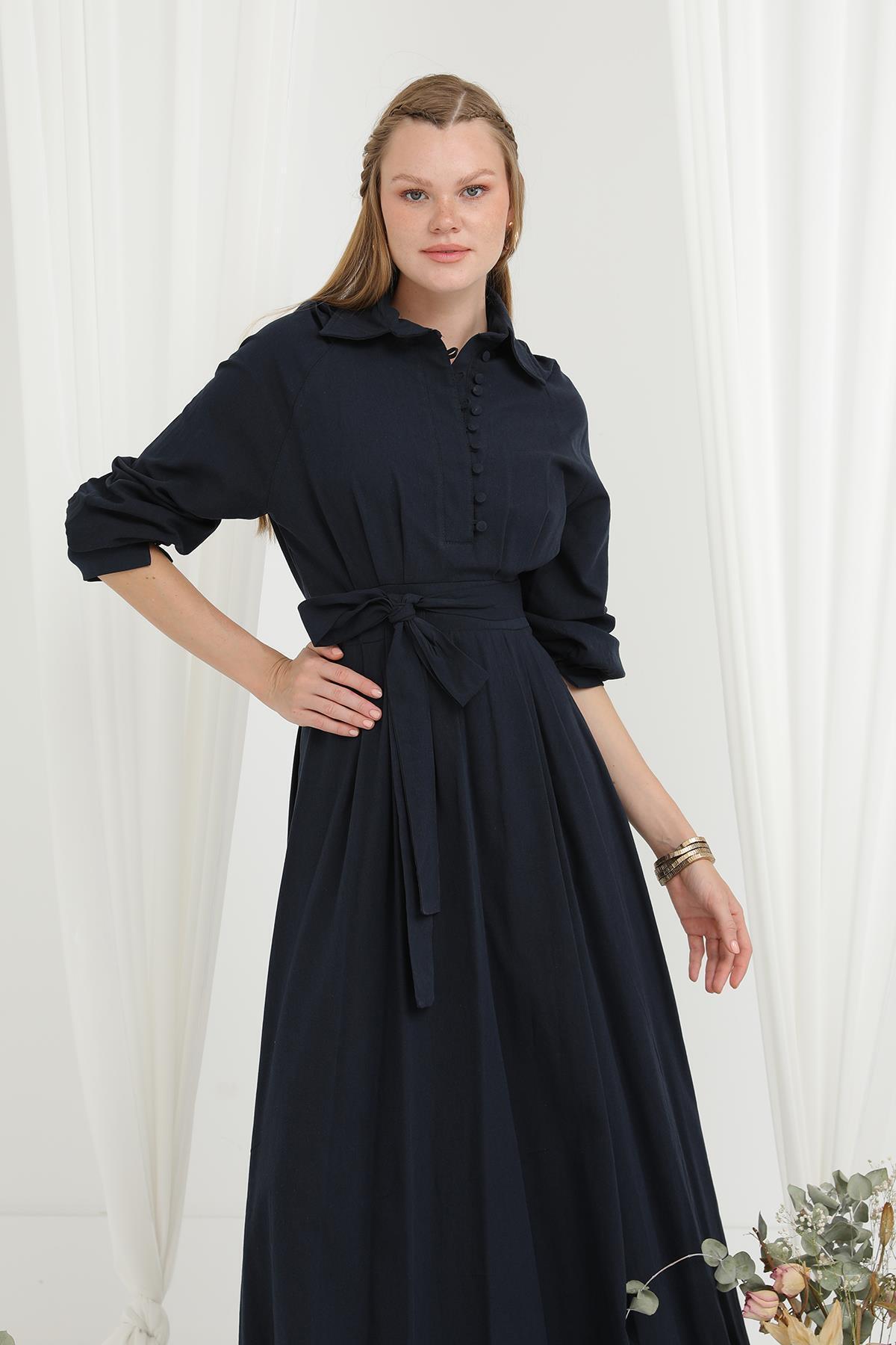 Kadın Kuşaklı Düğme Detaylı Hakim Yaka Elbise - 20688ELB - Lacivert Kadın Kuşaklı Düğme Detaylı Hakim Yaka Elbise - 20688ELB - Lacivert 25S-20688ELB L/XL