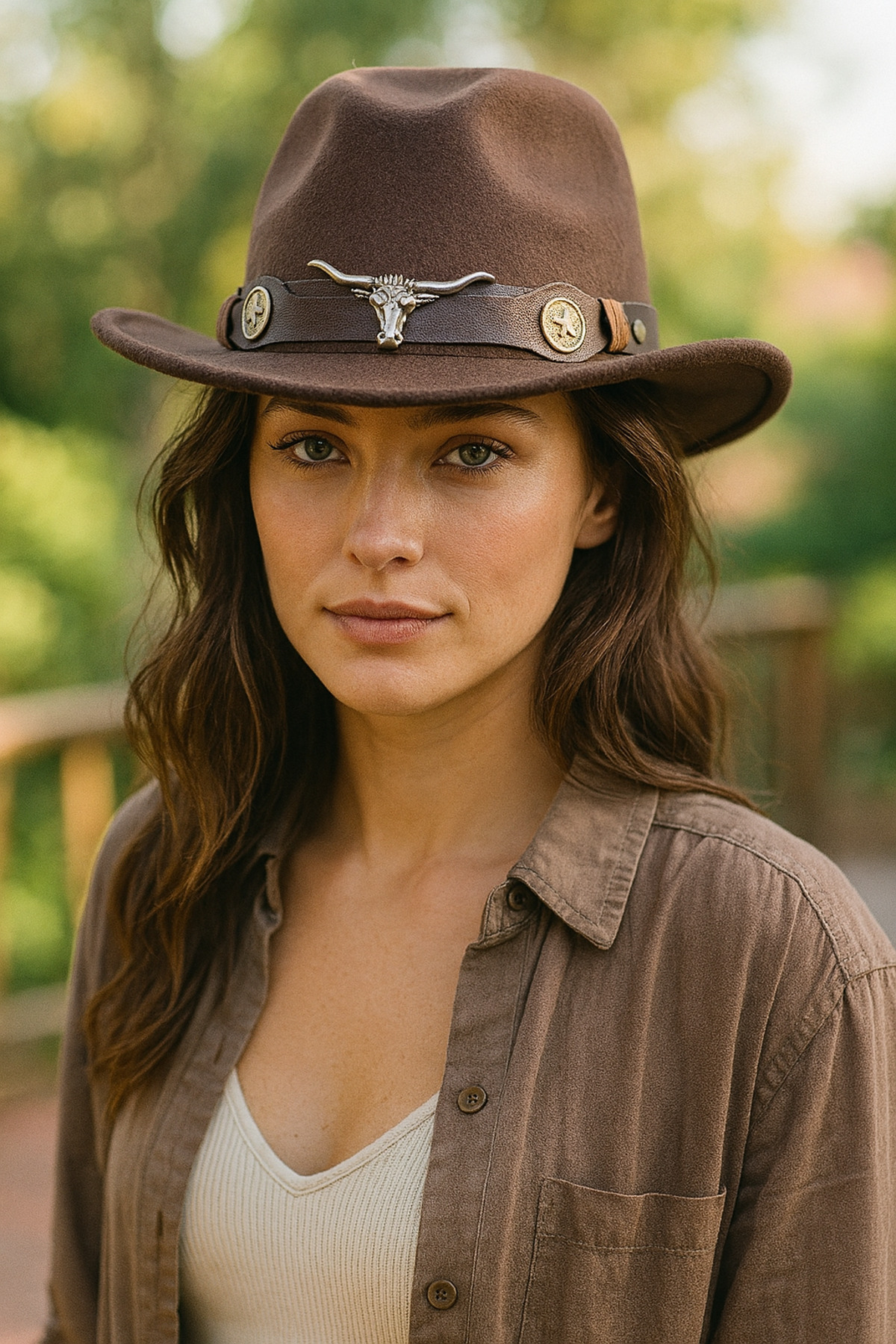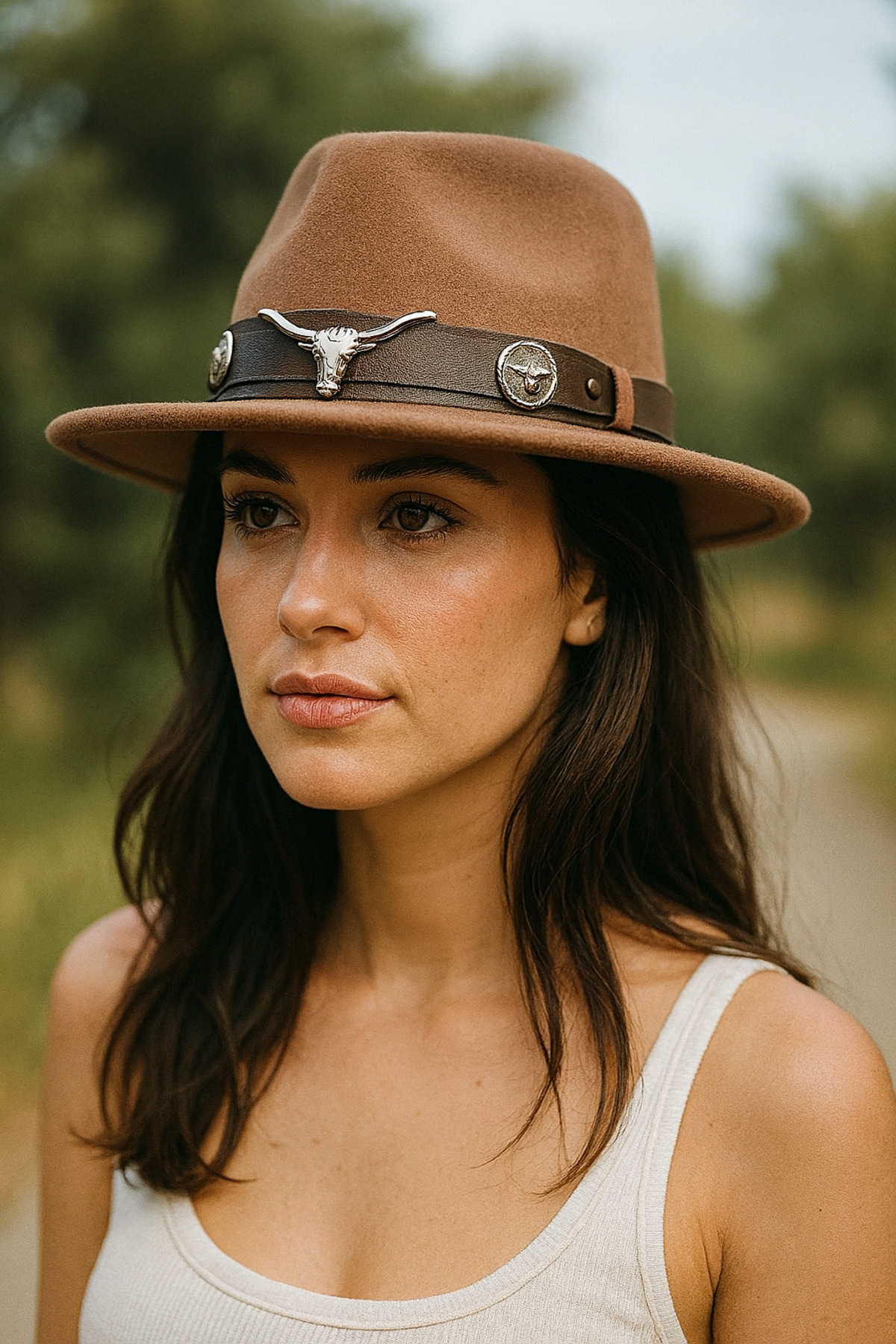 Kadın Kovboy Kaşe Fötr Şapka Longhorn Figürlü Metal Aksesuar Kadın Kovboy Kaşe Fötr Şapka Longhorn Figürlü Metal Aksesuar GR6411 تک سایز