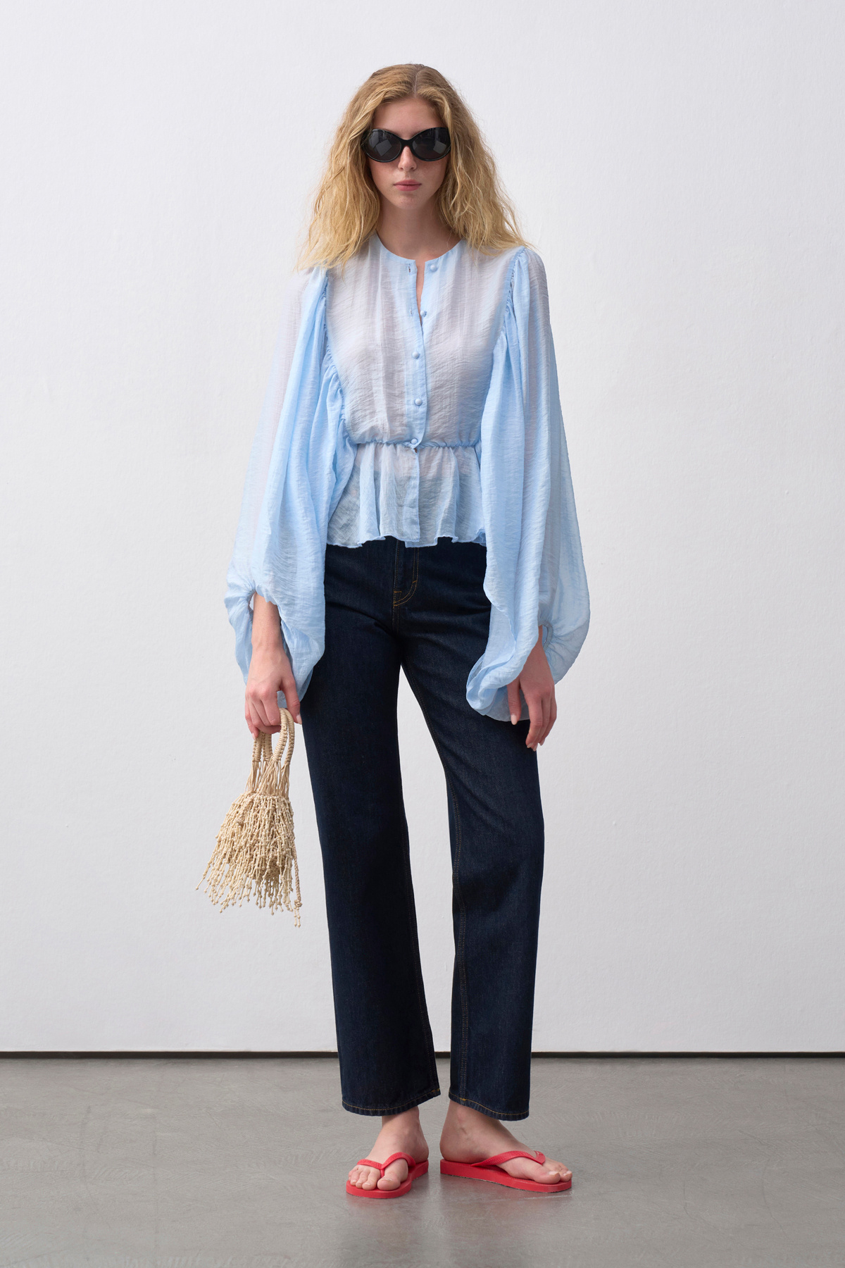 Şifon Görünümlü Volanlı Bluz Şifon Görünümlü Volanlı Bluz MTH40830 L