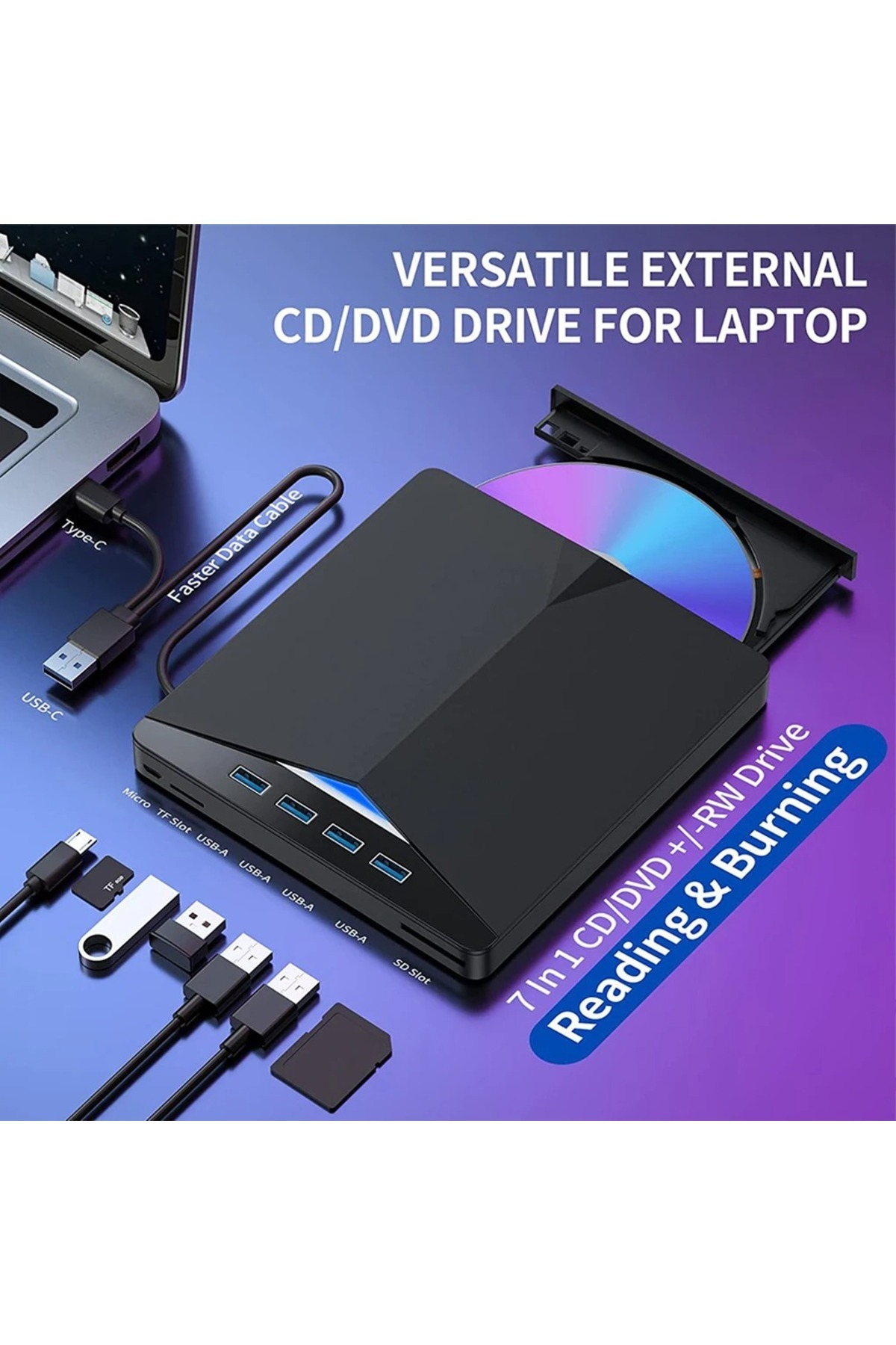 7in1 Harici DVD-ROM USB 3.0 HUB Çoğaltıcı TF SD Kart Okuyucu Type C Kablolu DVD Player CD 7in1 Harici DVD-ROM USB 3.0 HUB Çoğaltıcı TF SD Kart Okuyucu Type C Kablolu DVD Player CD MKPTCSRCYNTCH تک سایز