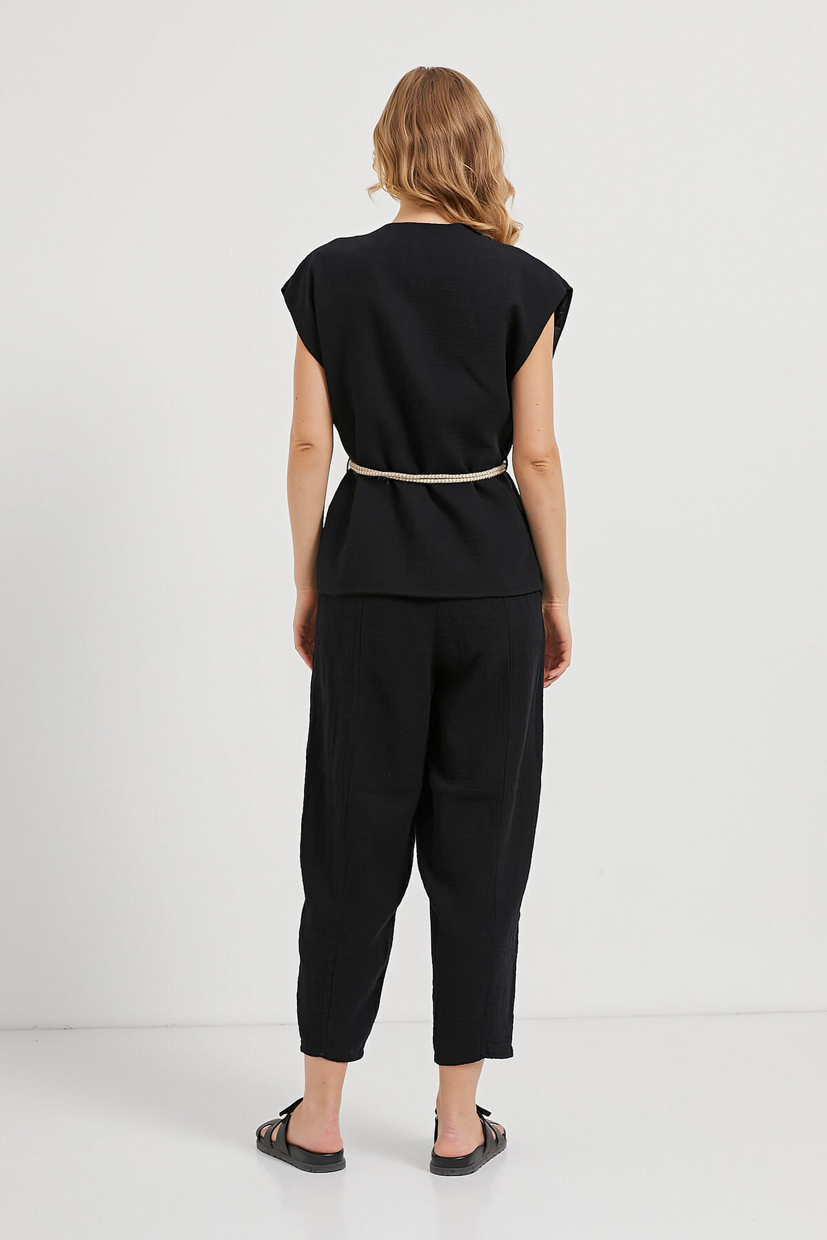 Kadın Halat Kemer Detaylı Salaş Siyah Müslin Yelek Kadın Halat Kemer Detaylı Salaş Siyah Müslin Yelek 463-5YB2390YLK XL
