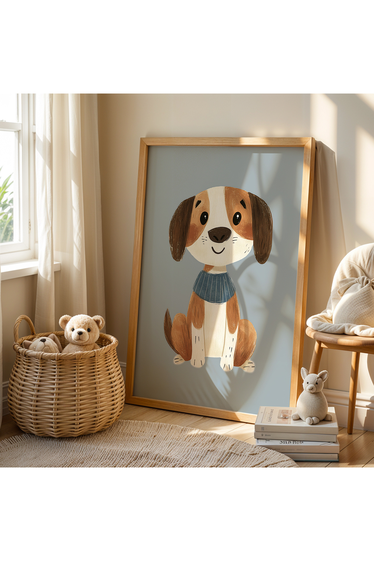 Minimal Mavi Atkılı Şirin Köpek Çocuk Odası Doğal Ahşap Çerçeveli Duvar Tablosu Minimal Mavi Atkılı Şirin Köpek Çocuk Odası Doğal Ahşap Çerçeveli Duvar Tablosu CBO-1620 50 x 70
